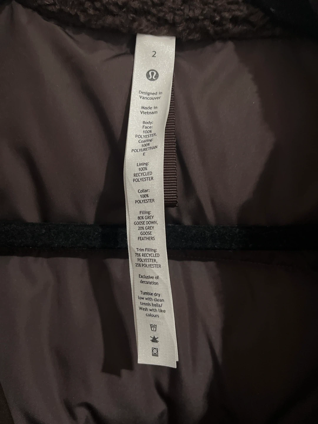Lululemon Waterproof Down Oversized Vest - Size 2 - Espresso