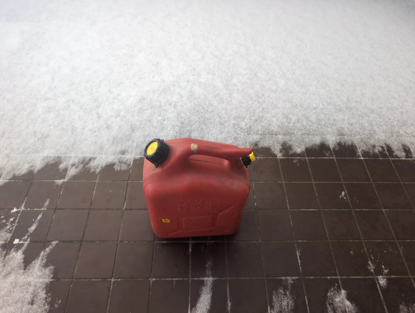 This is a red gas can for storing fuel. It has a sturdy handle and a secure cap for safe transport. Keep extra fuel on hand for your vehicles or equipment! 10 liter capacity with cap and spout.