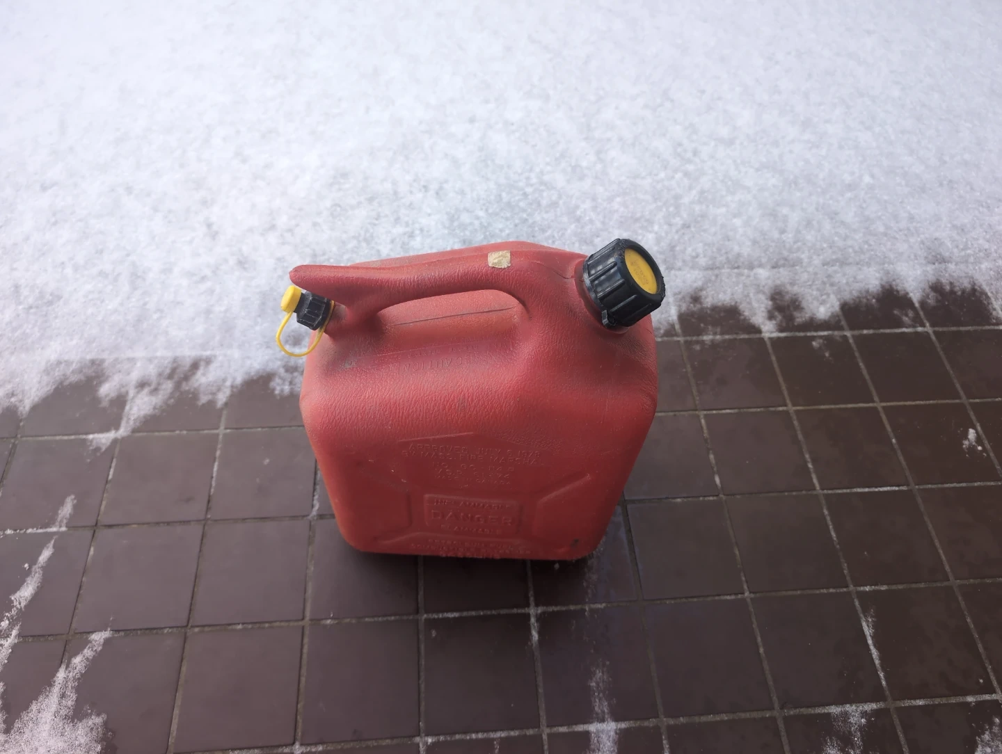 This is a red gas can for storing fuel. It has a sturdy handle and a secure cap for safe transport. Keep extra fuel on hand for your vehicles or equipment! 10 liter capacity with cap and spout.