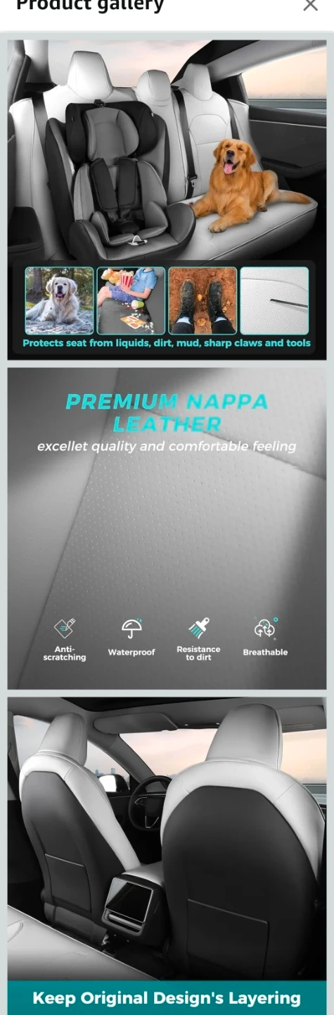 Enhance the interior of your Tesla Model 3 with these new white Nappa leather seat covers, designed for the 2024-2025 model years. These covers offer a custom fit and full protection, maintaining the original design layering while providing a comfortable and stylish upgrade. They're also airbag compatible and easy to install, ensuring a hassle-free enhancement to your car's interior.