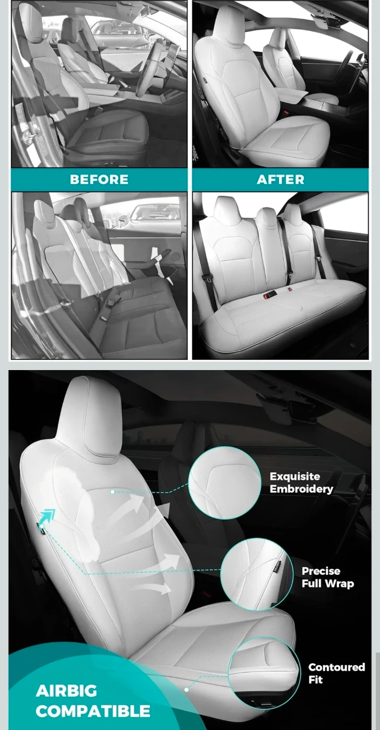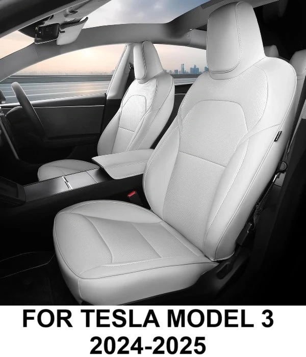 Enhance the interior of your Tesla Model 3 with these new white Nappa leather seat covers, designed for the 2024-2025 model years. These covers offer a custom fit and full protection, maintaining the original design layering while providing a comfortable and stylish upgrade. They're also airbag compatible and easy to install, ensuring a hassle-free enhancement to your car's interior.