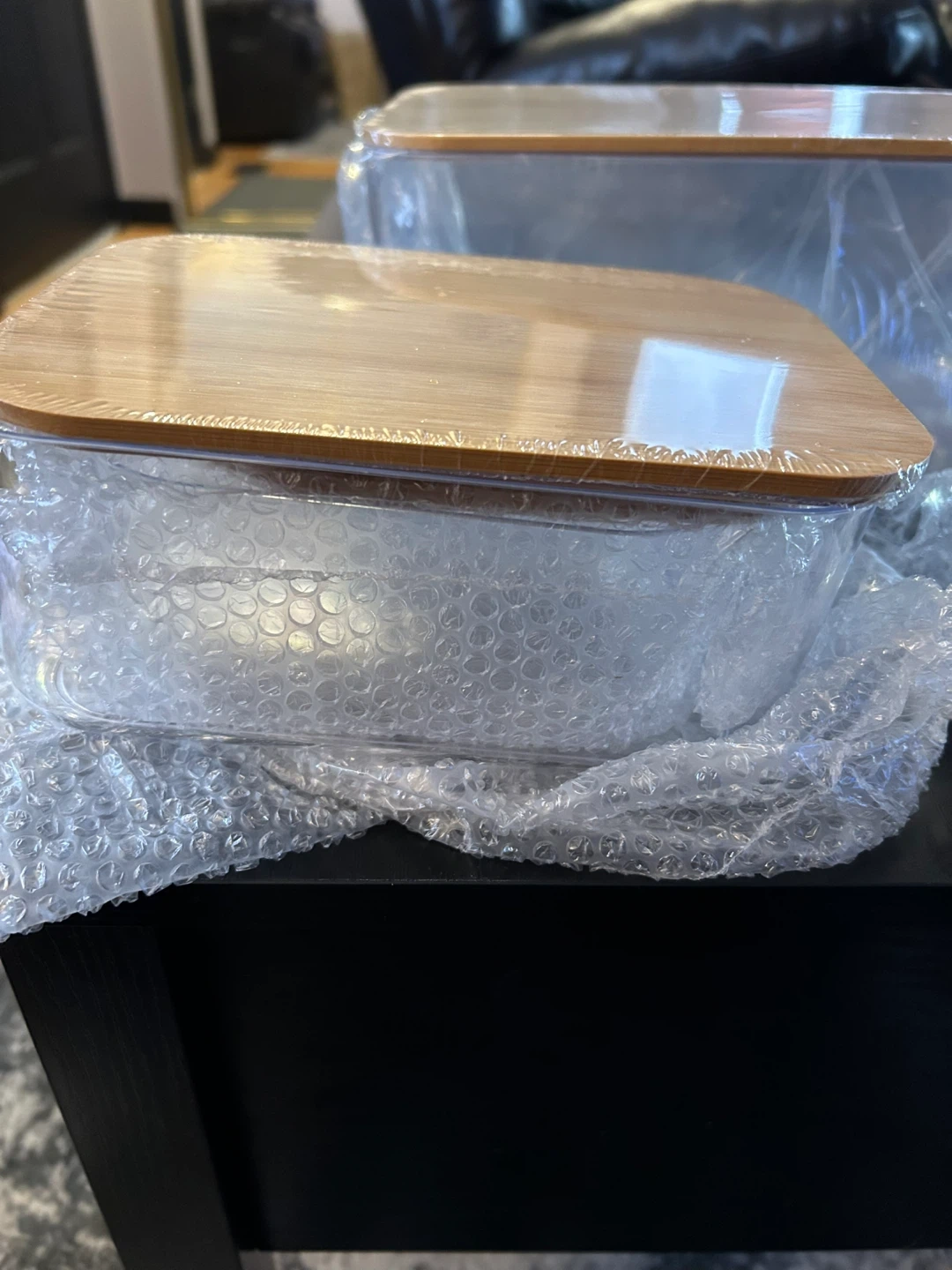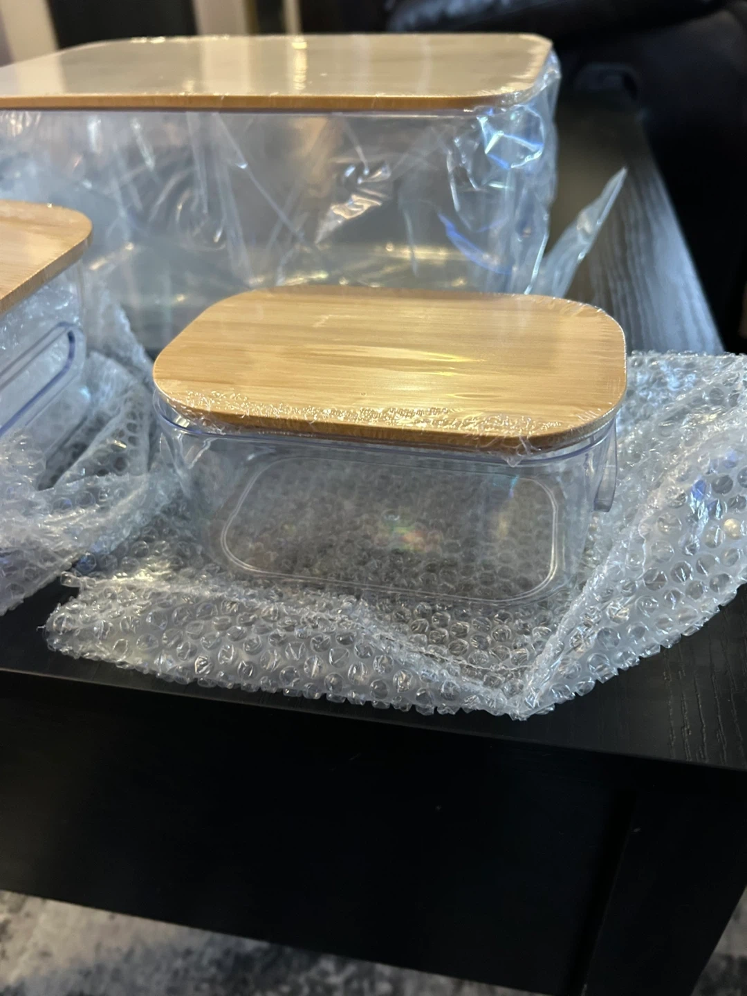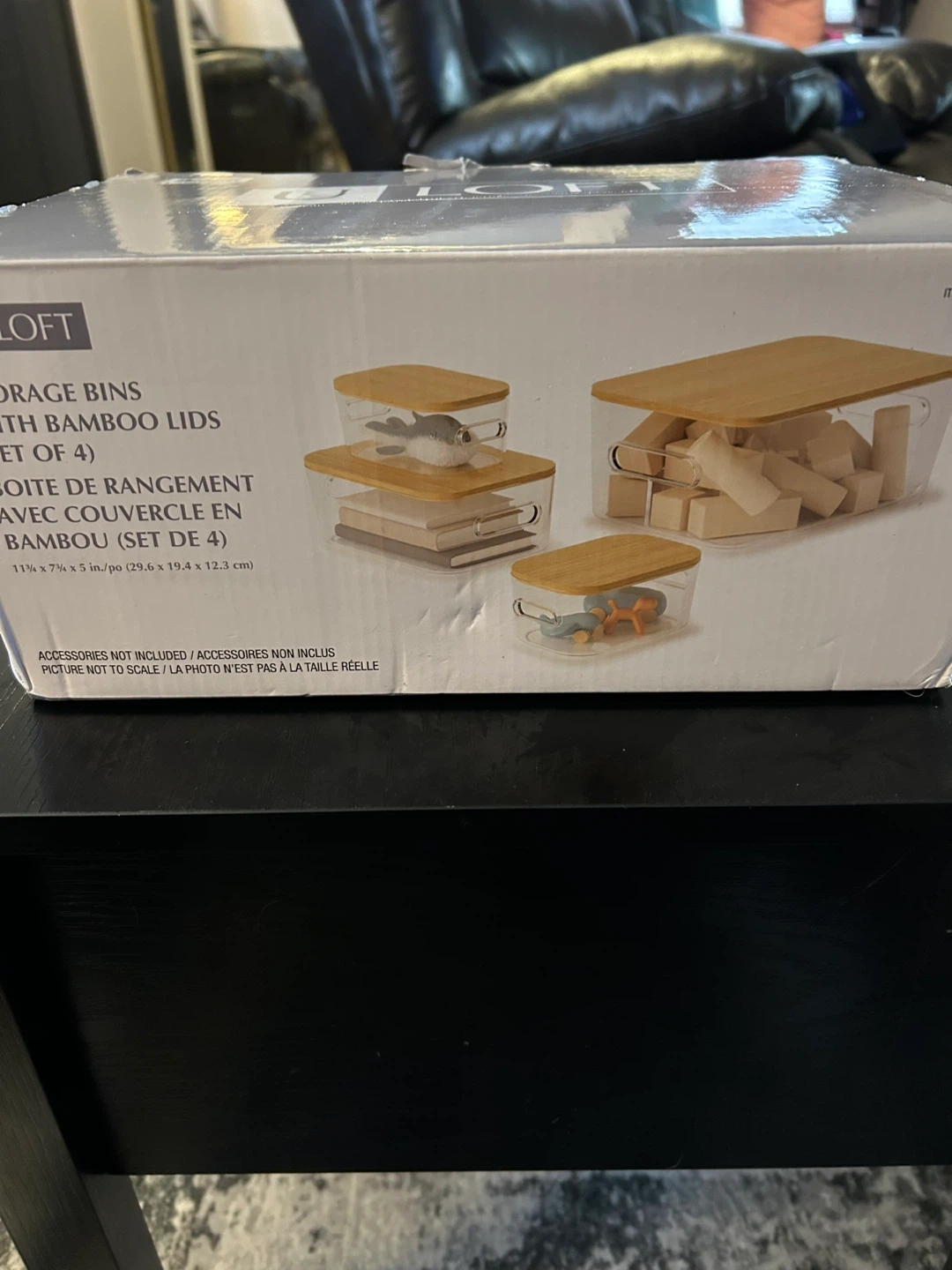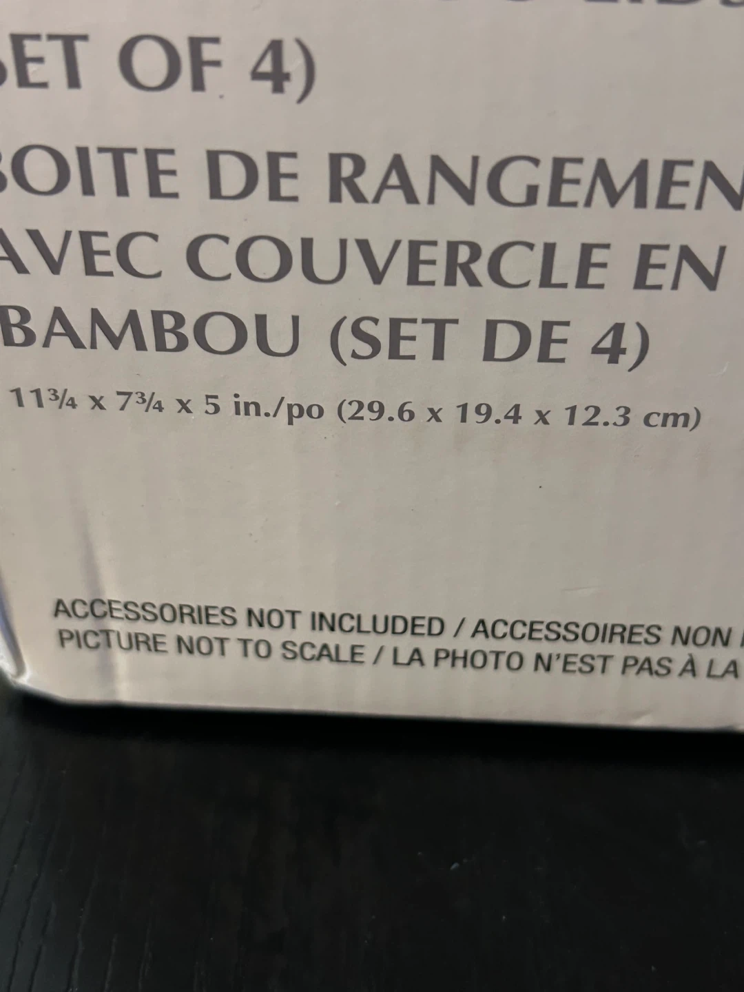 This is a set of four storage bins. They come with bamboo lids. The dimensions are in pictures These are great for organizing small items.