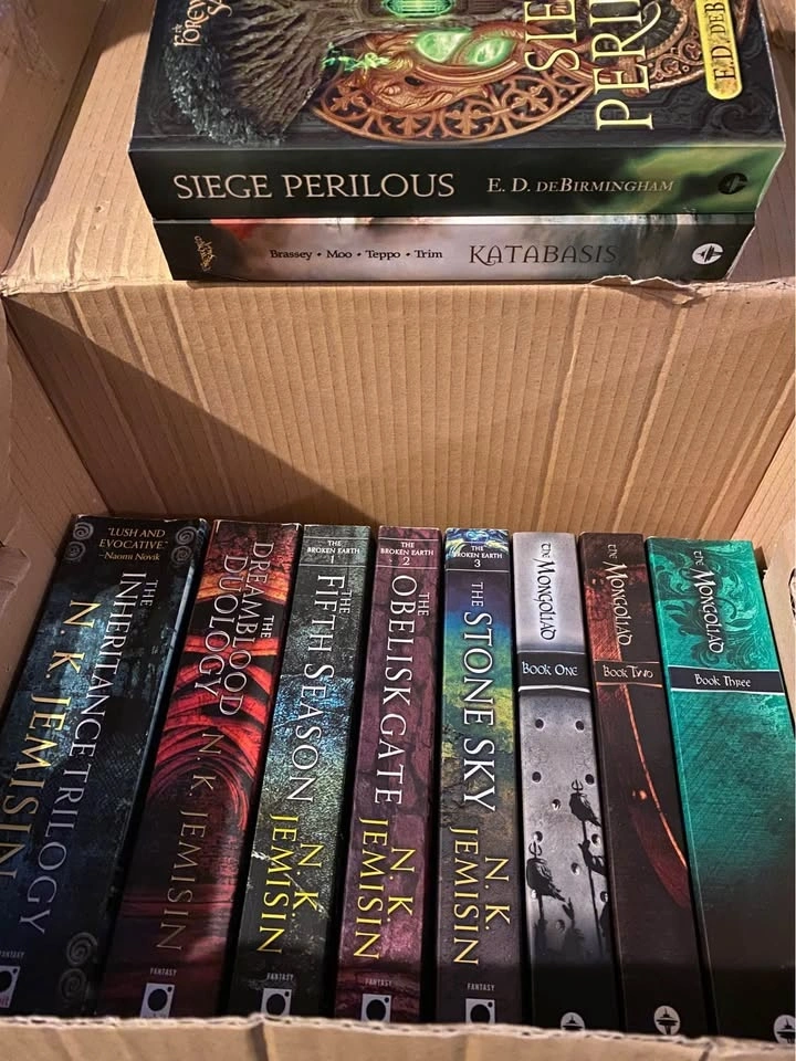 Pic 2: Jemisin - 2 books at $10 each; books 1, 2, 3 for $30. The Mongoliad books 1-3 for $30. The Forever Saga - 2 books at $8 each.