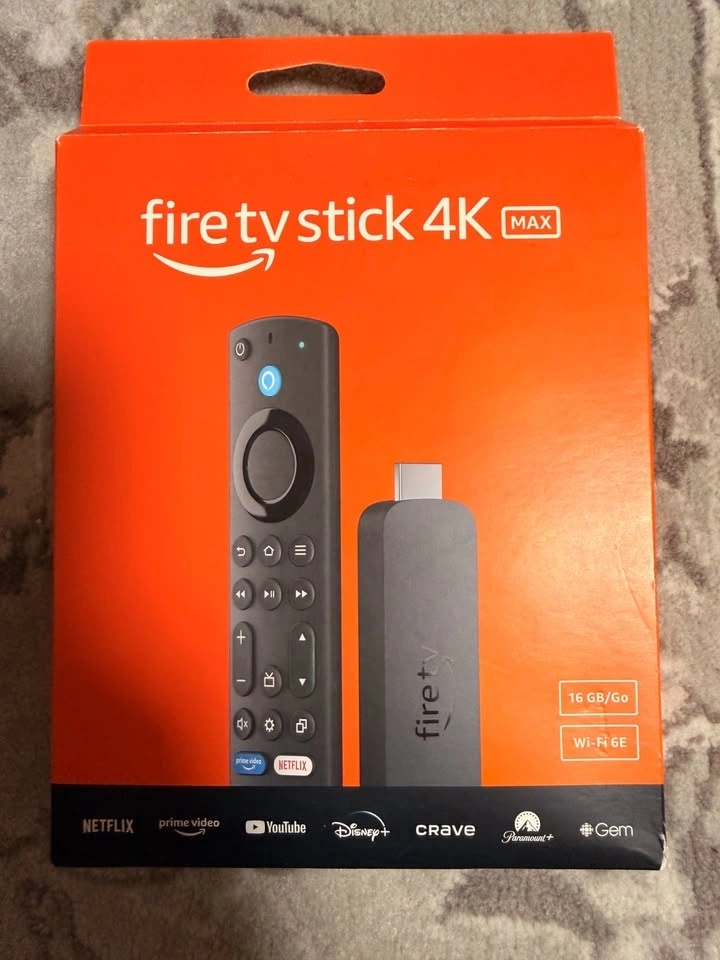 Elevate your entertainment experience with a powerful processor for lightning-fast app starts and fluid navigation. Play Xbox games, no console required – Stream Call of Duty: Black Ops 7, Hogwarts Legacy, Outer Worlds 2, Ninja Gaiden 4, and hundreds of games on your Fire TV Stick 4K Max with Xbox Game Pass via cloud gaming. Xbox Game Pass subscription and compatible controller required. Each sold separately. Enjoy the show in 4K Ultra HD, with support for Dolby Vision, HDR10+, and immersive Dolby Atmos audio. Enjoy smoother 4K streaming with Wi-Fi 6E support, even when other devices are connected to your router. The first-ever streaming stick with Fire TV Ambient Experience lets you display over 2,000 pieces of museum-quality art and photography. Fire TV Stick 4K Max has 16GB of storage—double that of Fire TV Stick 4K Plus and our other streaming sticks, for even more apps, games and downloads. Stream more than 1.2 million movies and TV episodes. Watch favourites from Netflix, Prime Video, Disney+, Crave, and more, plus listen to millions of songs. Subscription fees may apply.