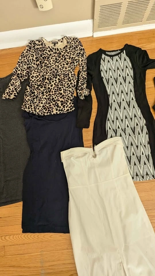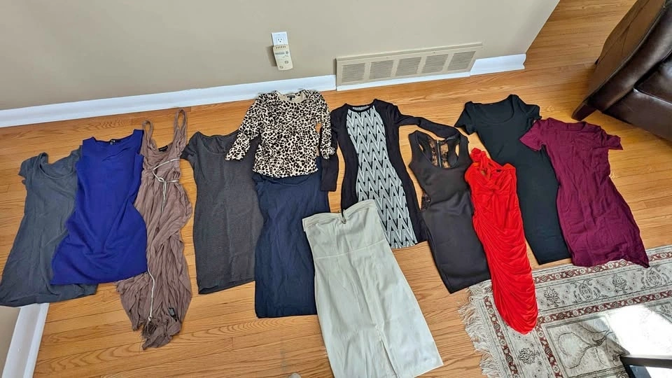 Varying condition and materials, mostly gently used. Sold as a lot, all 12 for $45. Includes Juicy Couture brand and a bunch of comfy cotton dresses. No try-ons, sorry. Sold as is. Cash or e-transfer accepted. Fits approx. size small with stretch to medium on some (4-8).