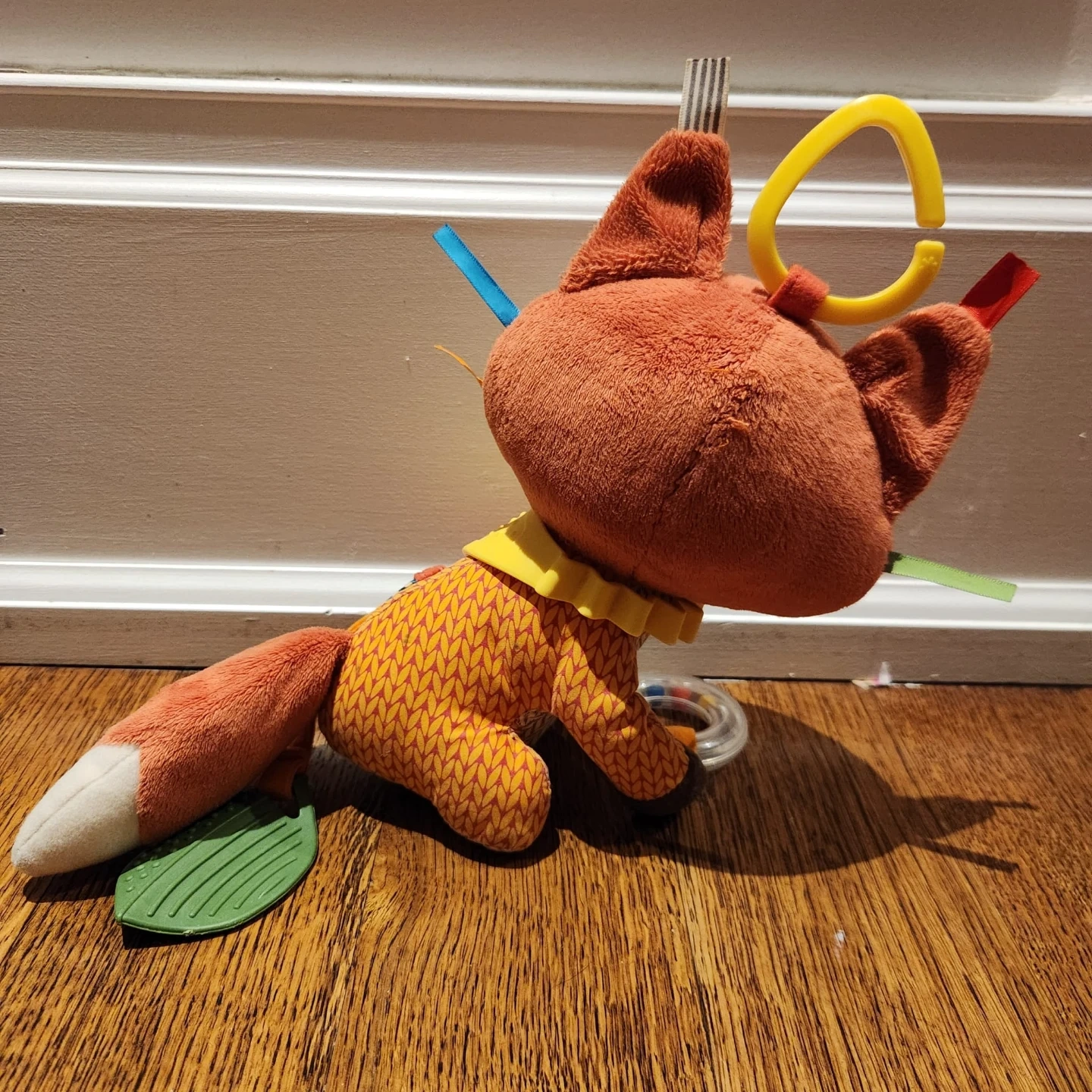 β’ Leaf-shaped teether, mirror, rings & textured fabrics