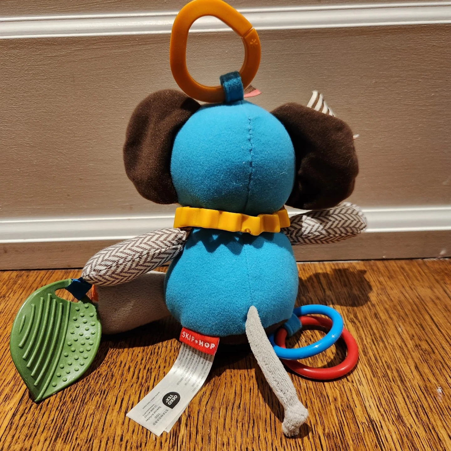 β’ Leaf-shaped teether, mirror, rings & textured fabrics