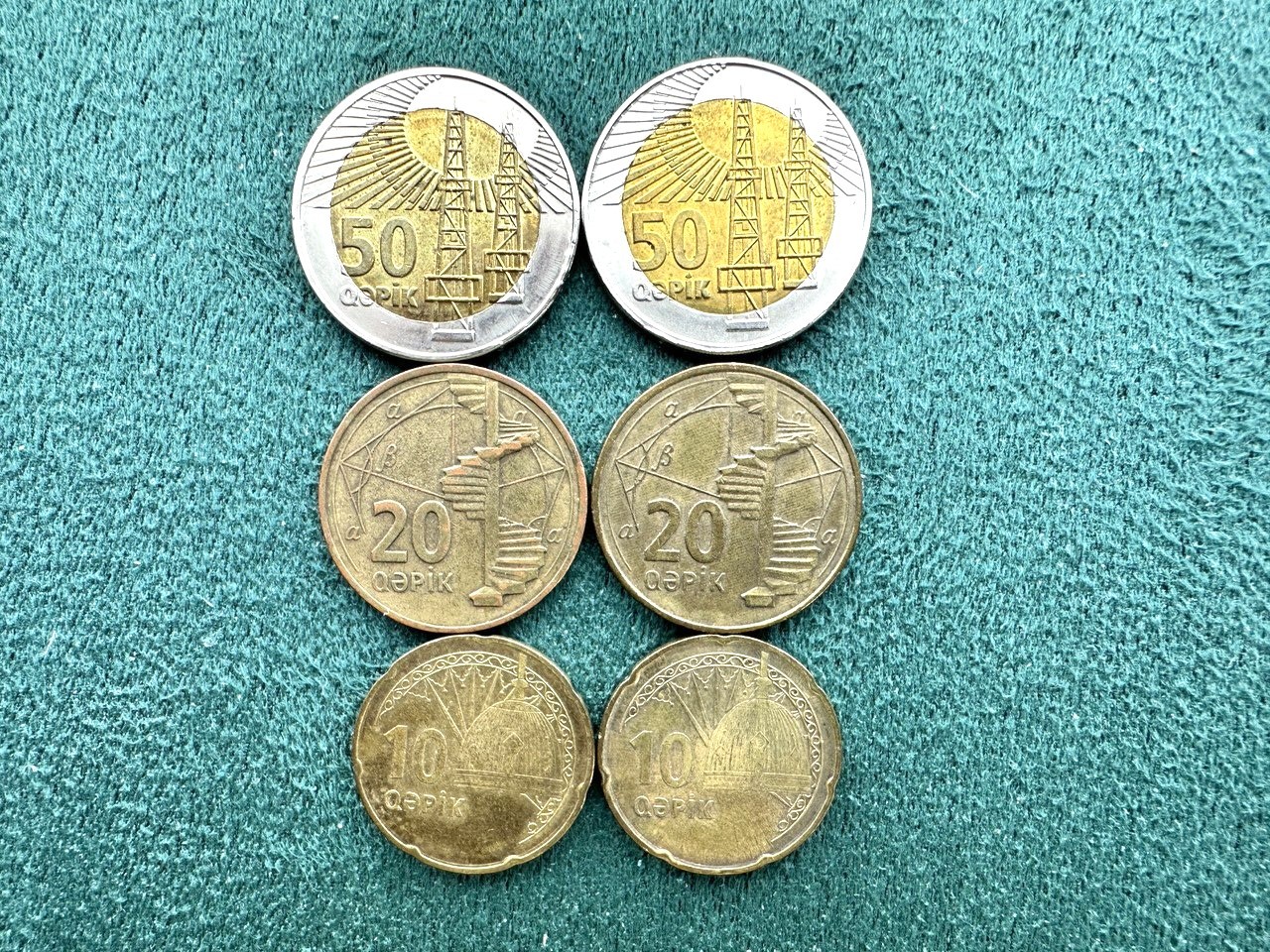2x 50 Qəpik: Stunning bimetallic coins featuring oil derricks (The most iconic Azerbaijan coin).