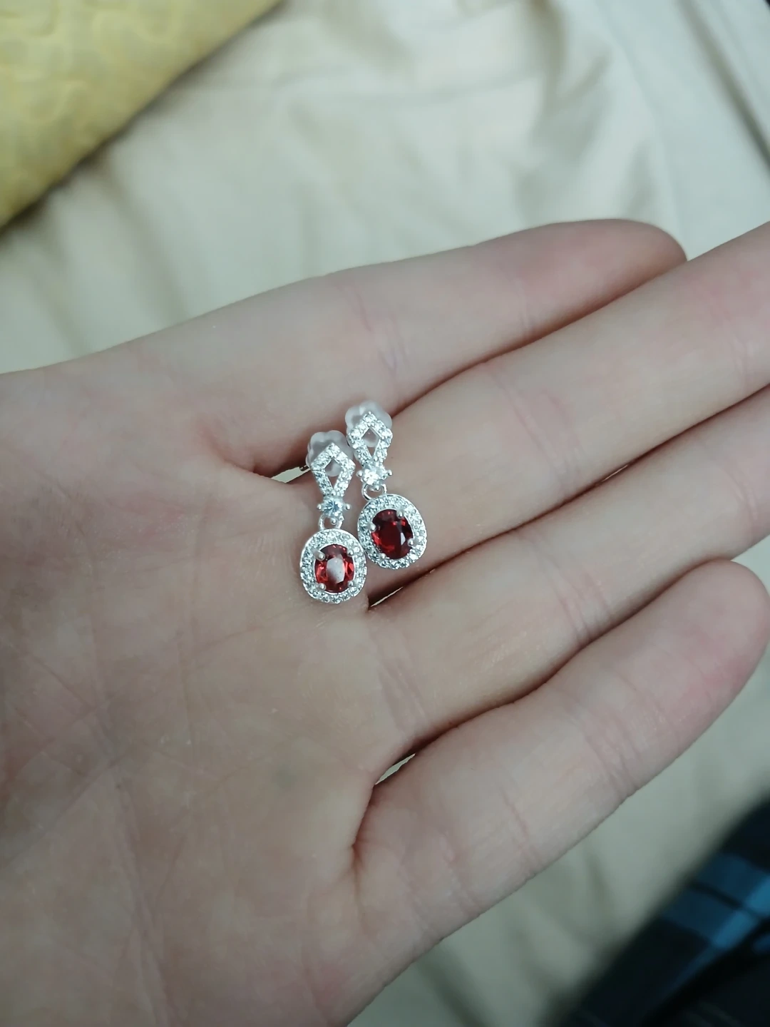 Brand new 925 silver and garnet dangling earrings. 1 carat per earring. Comes with extra backings. Cash only. Pick up or meet up in public place.