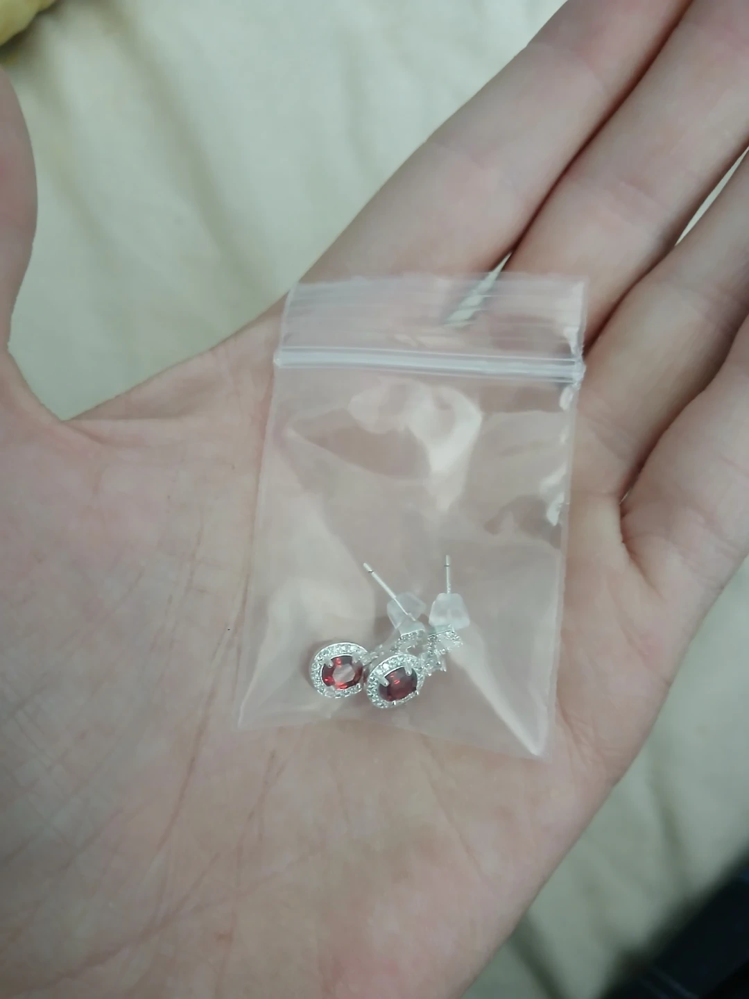Brand new 925 silver and garnet dangling earrings. 1 carat per earring. Comes with extra backings. Cash only. Pick up or meet up in public place.
