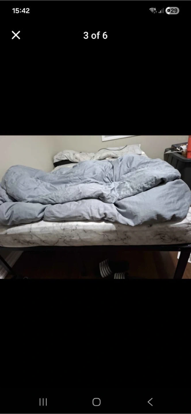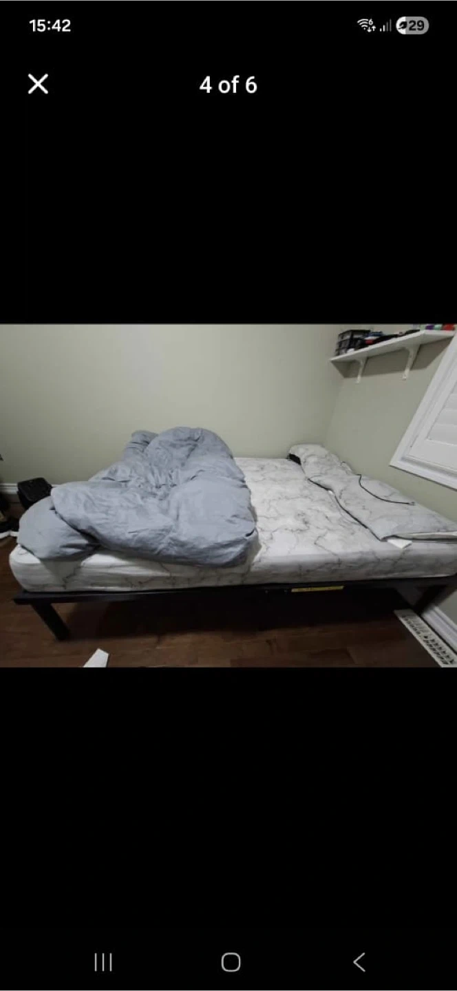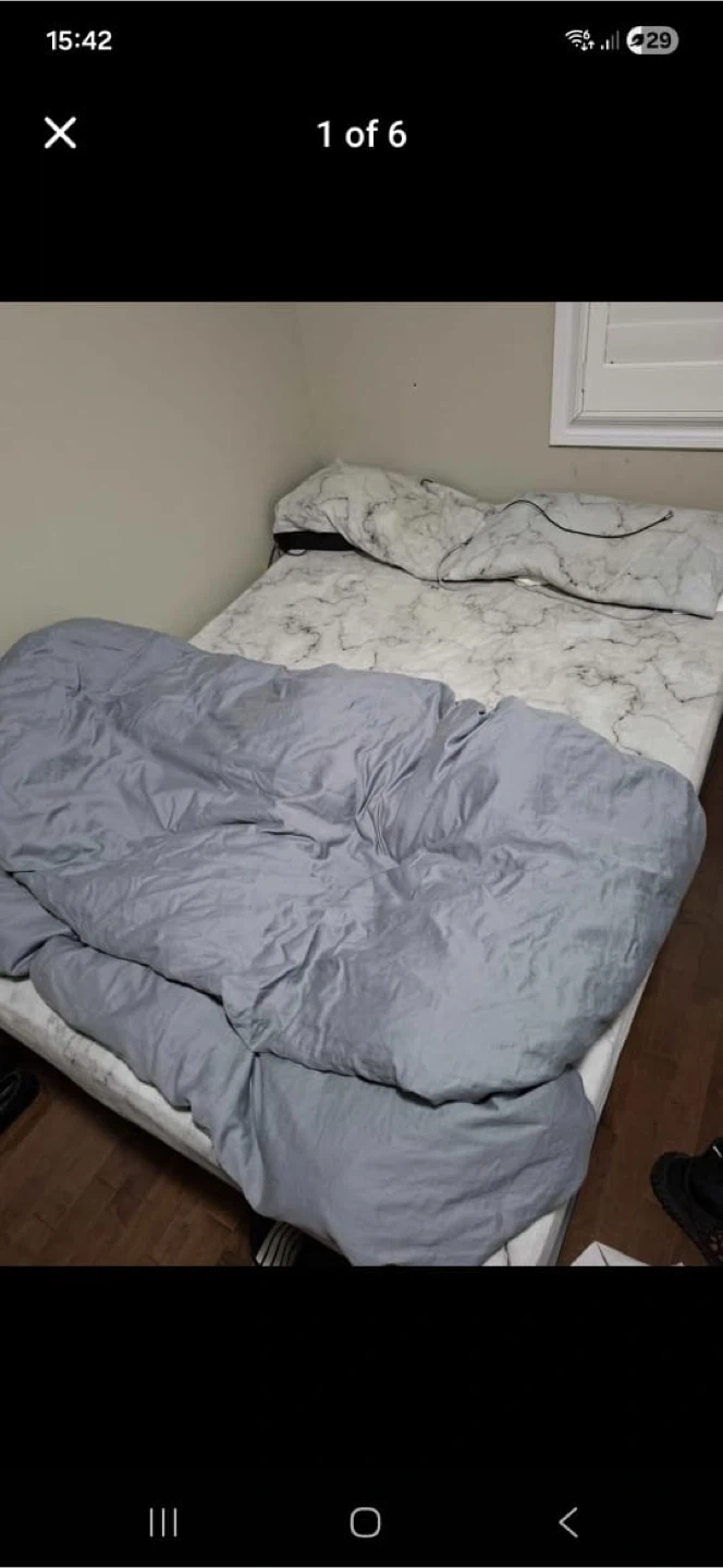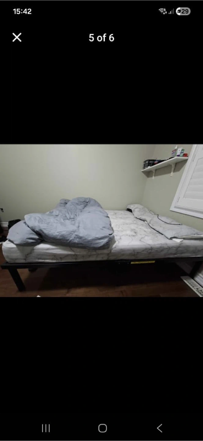 IKEA Queen size mattress, barely used. This is on the bed frame. This mattress is anti-bug i.e., built with materials which will not let any bacteria/insects to be on it. Very soft and comfortable material and make.
