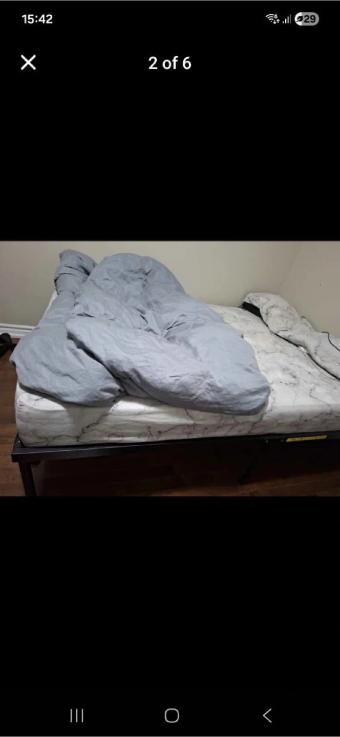 IKEA Queen size mattress, barely used. This is on the bed frame. This mattress is anti-bug i.e., built with materials which will not let any bacteria/insects to be on it. Very soft and comfortable material and make.