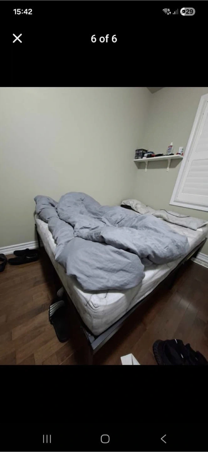 Queen Bed frame made of steel. It's a queen size which is fixed right now, you can take it as it is.