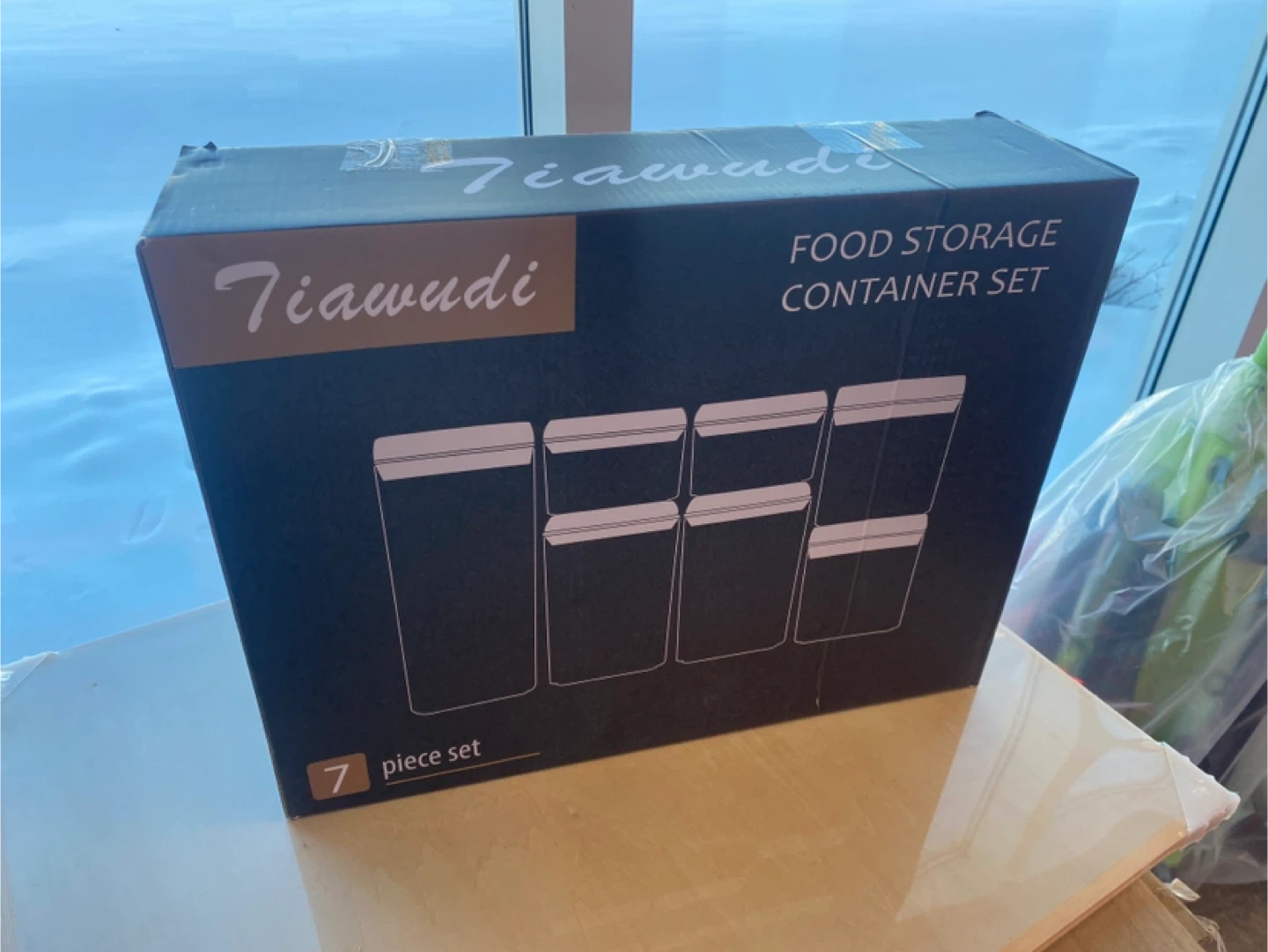 This is a 7-piece food storage container set by Tiawudi. It's designed for keeping your pantry items fresh. Containers come in various sizes for different needs.