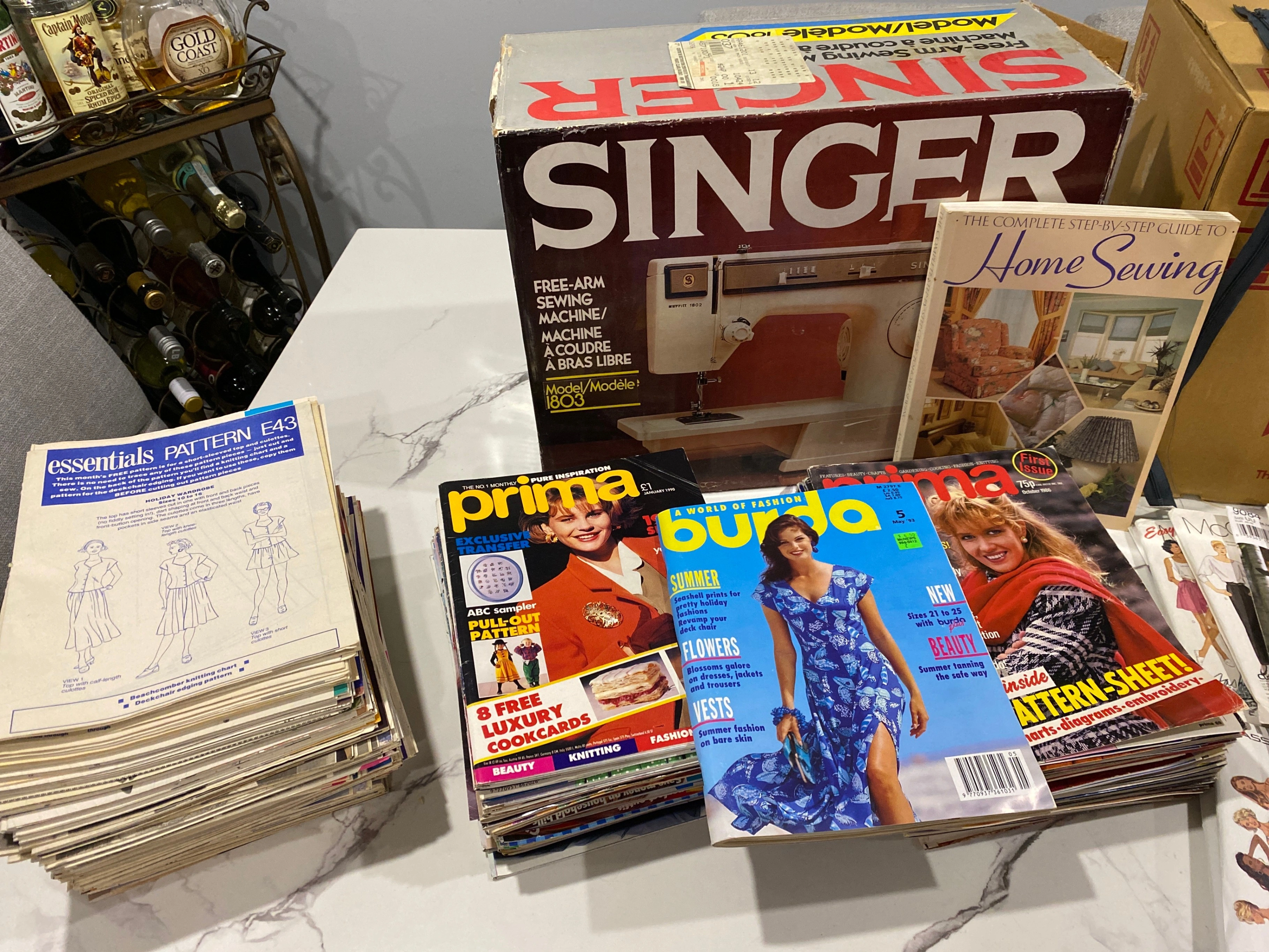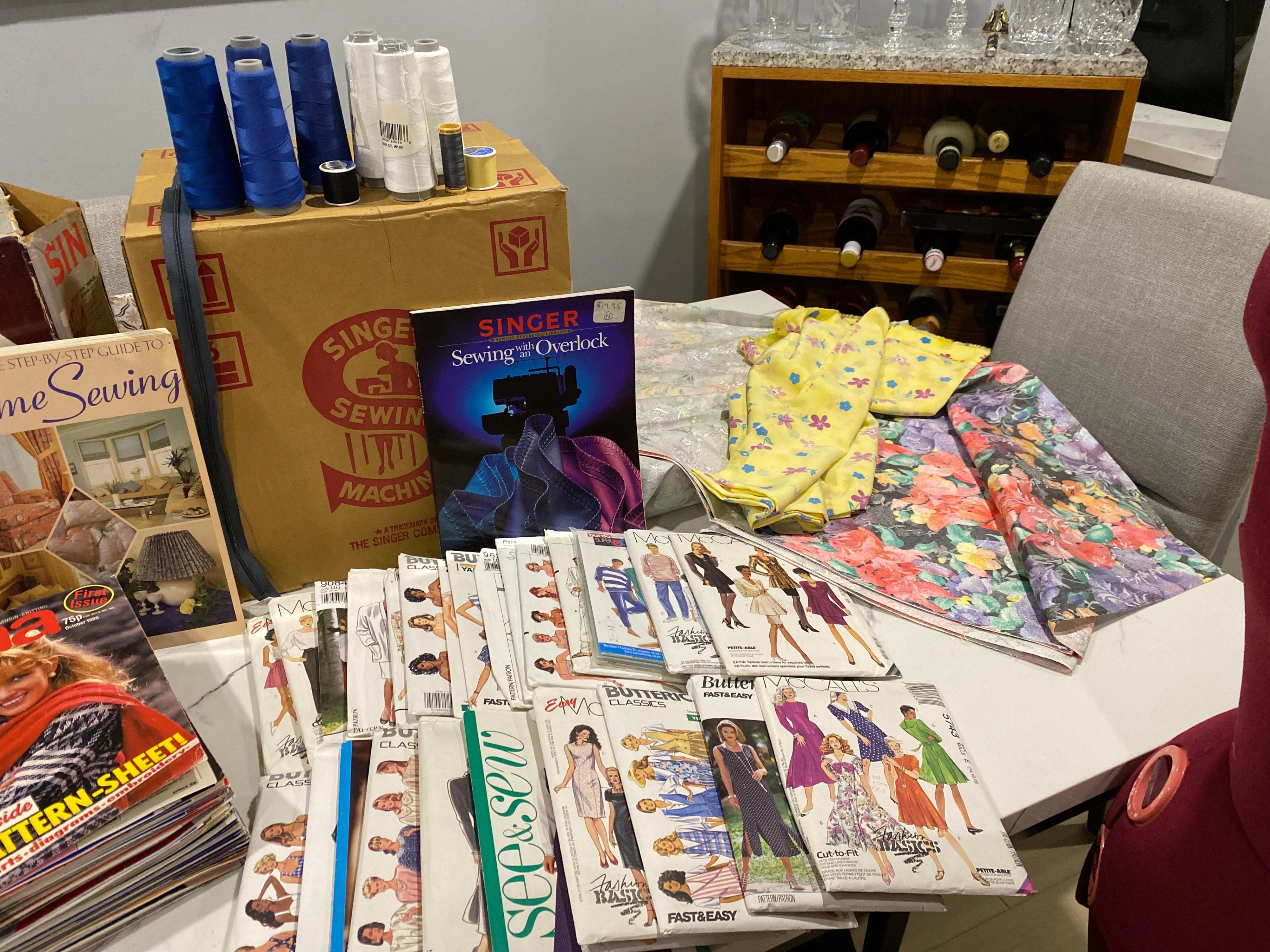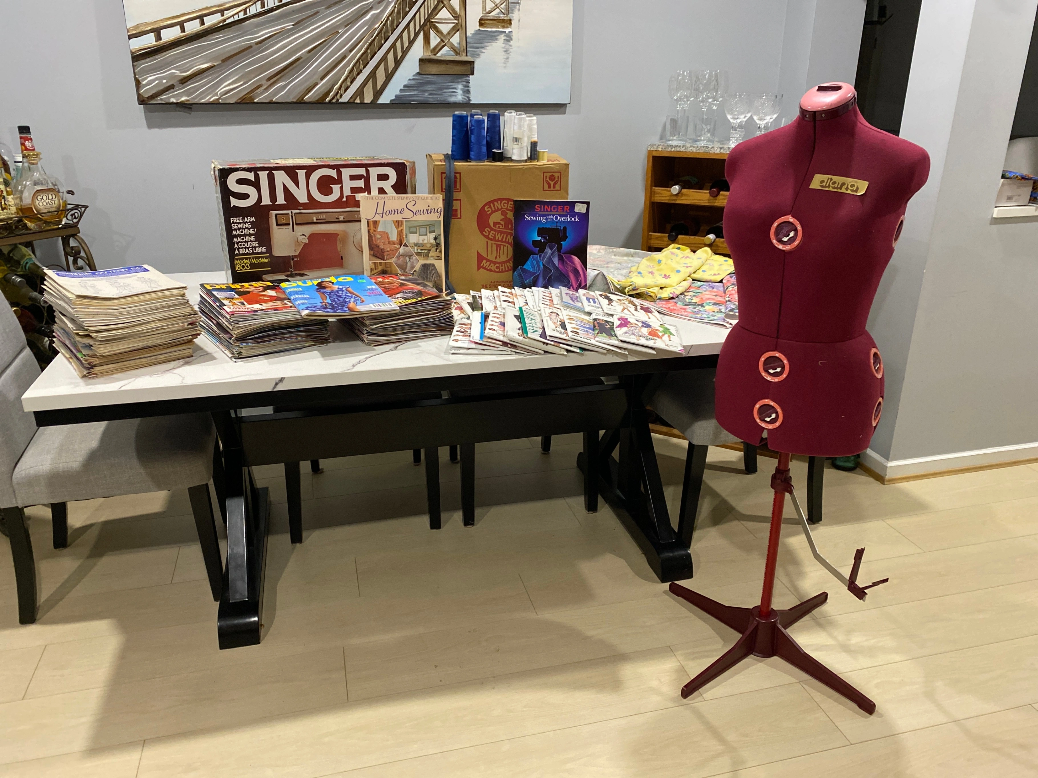 Sewing machine, overlocker, dress form, patterns and accessories