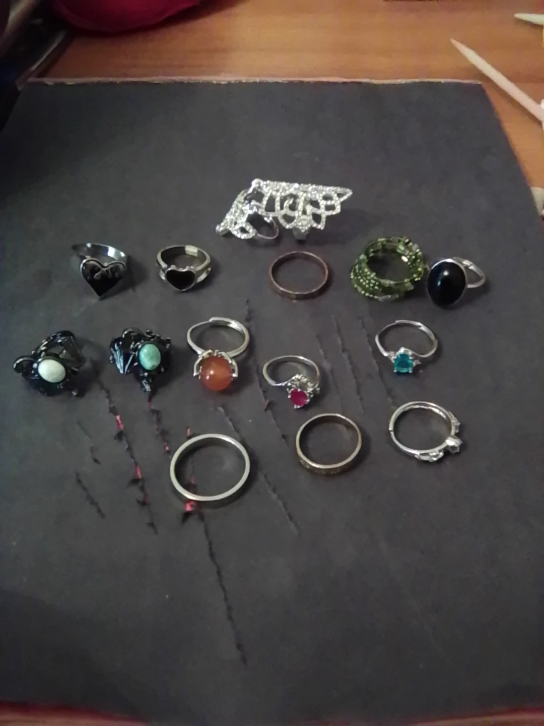 Costume jewelry rings *All the ones with stones are adjustable size* *I do not know what size any of the other ones are*