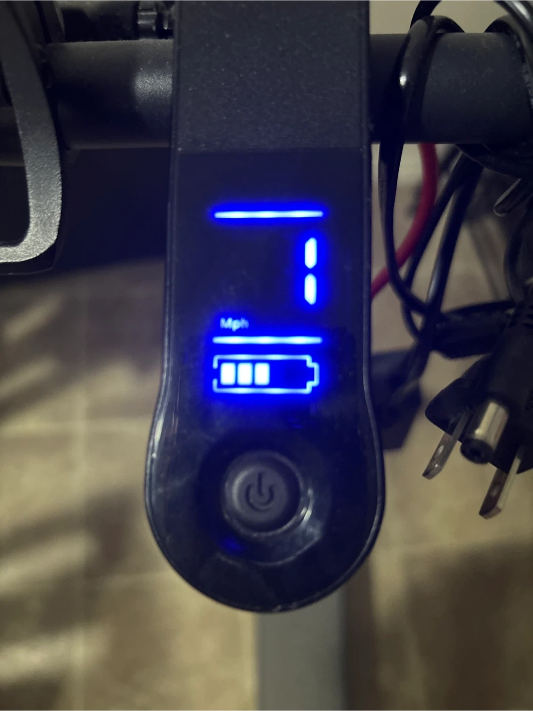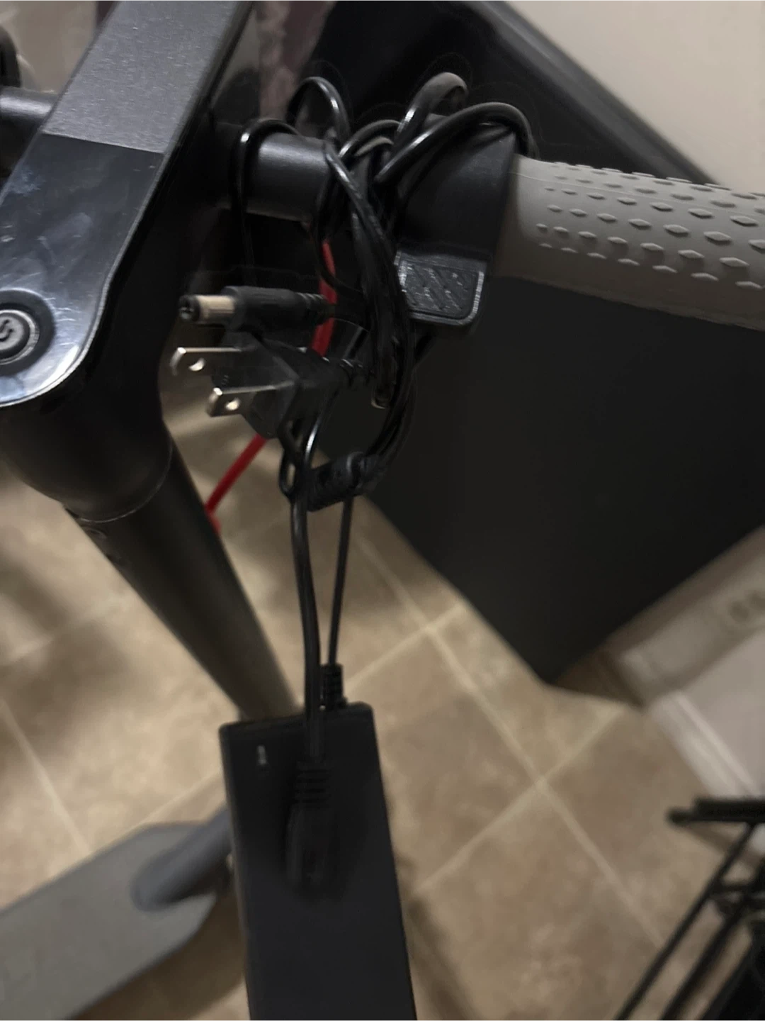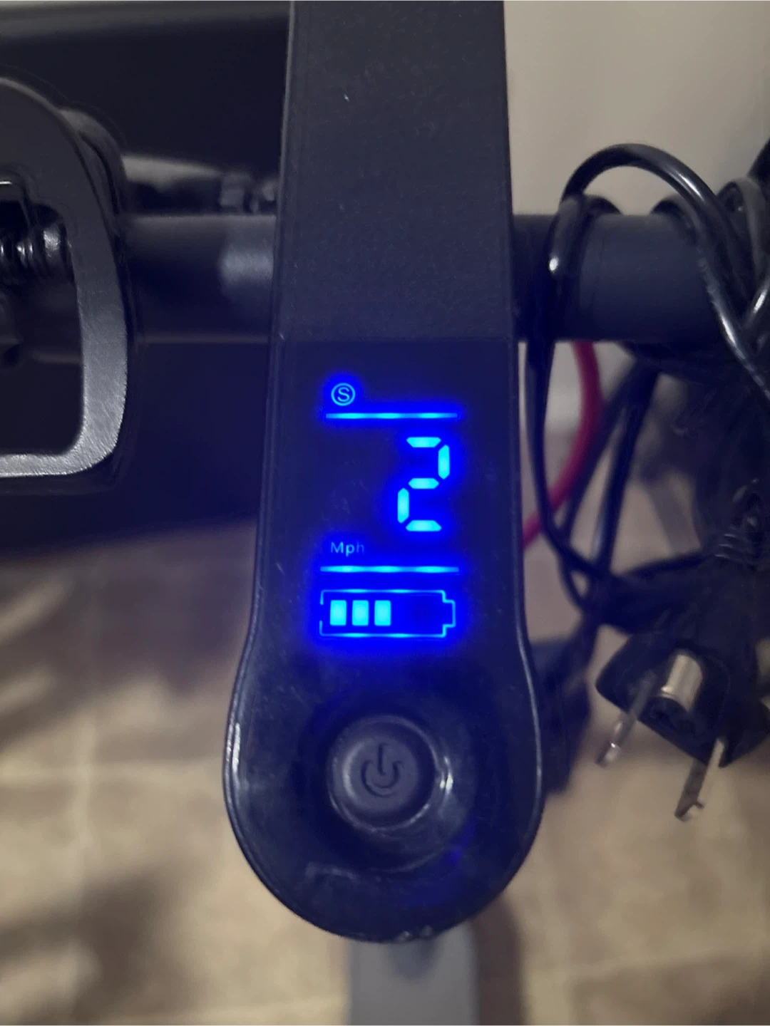 It’s a grey electric scooter that goes up to 25km. Perfect for kids. It has two speed modes, normal, sport. And it come with a charger