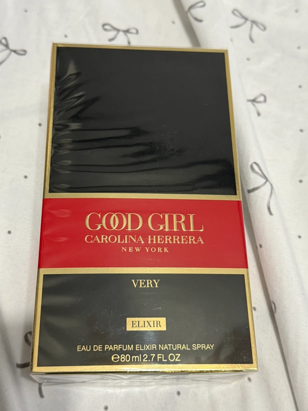 This is a Carolina Herrera Good Girl Very Elixir natural spray. It's an eau de parfum in a generous 80ml (2.7 fl oz) size. This perfume comes in its original packaging.