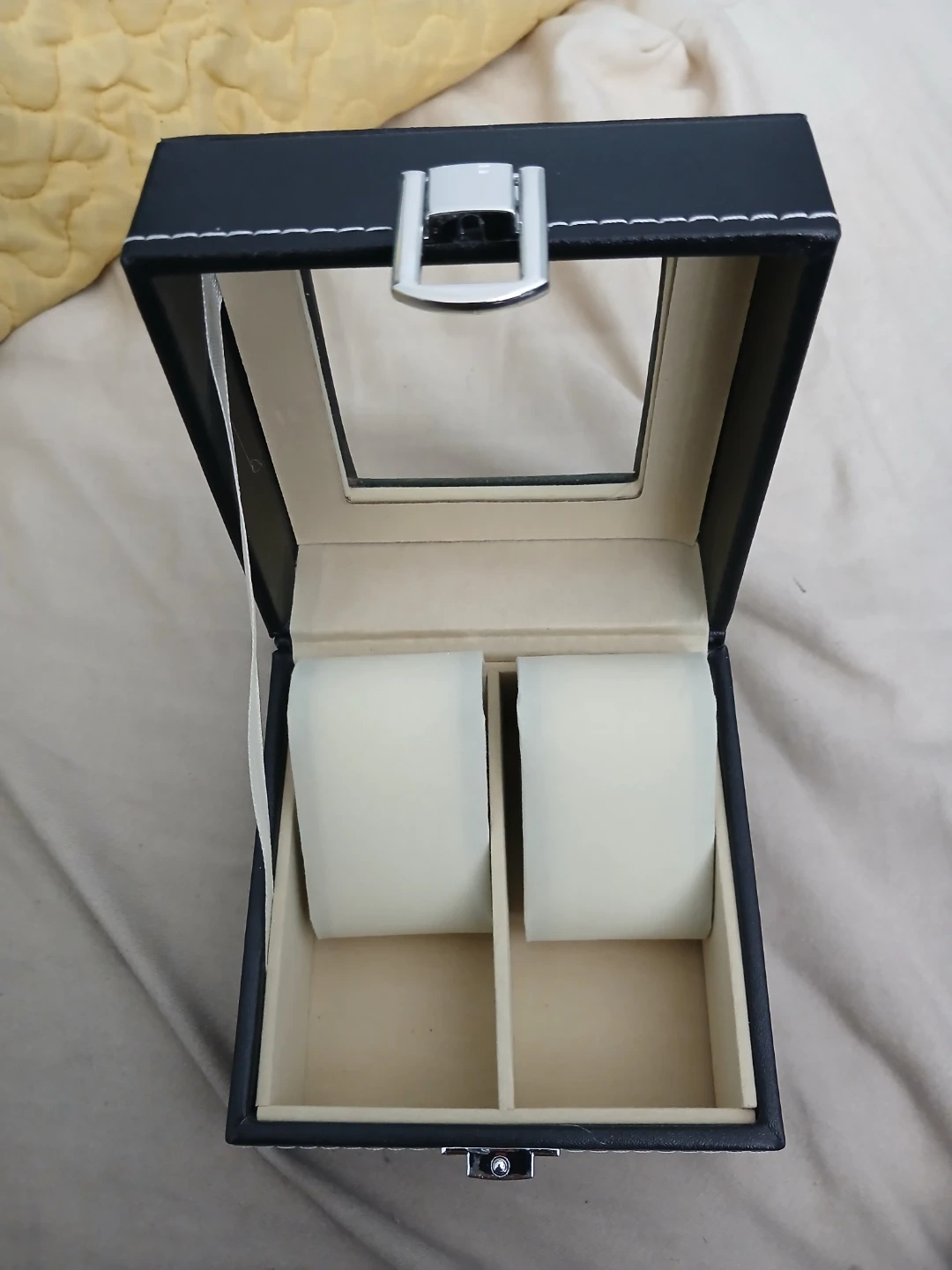 Brand new black PU Leather 2-slot watch box with clear lid. Cash only. Pick up or meet up in public place. Willing to bargain on the price.