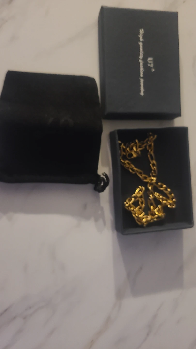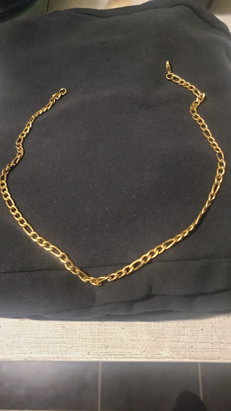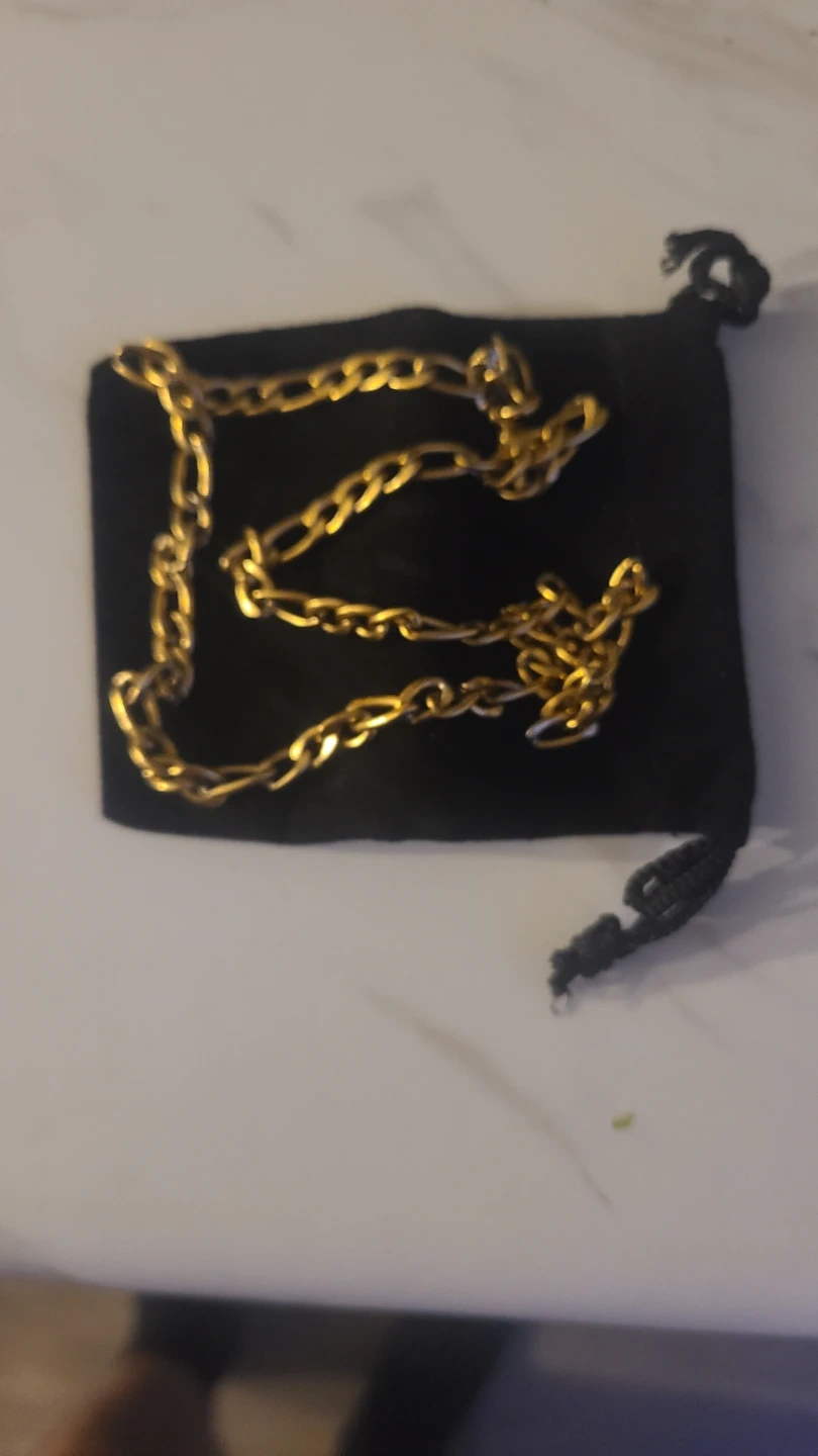 Buy & SellGold Tone Figaro Chain NecklaceGold Tone Figaro Chain Necklace$52A gold tone Figaro chain necklace is included with a black velvet pouch and a presentation box. High quality jewelry fashion necklace.ConditionNewSize18"WHERE TO MEETCheck LocationView MapSELLERverified660418Binbrook650 reviews1 chats·0 favorites·42 viewsSEND CHAT TO SELLERHi 660418! I’m interested in your listing.Hi 660418! I’m interested in your listing.Get the Karrot app to chatSign In to chat