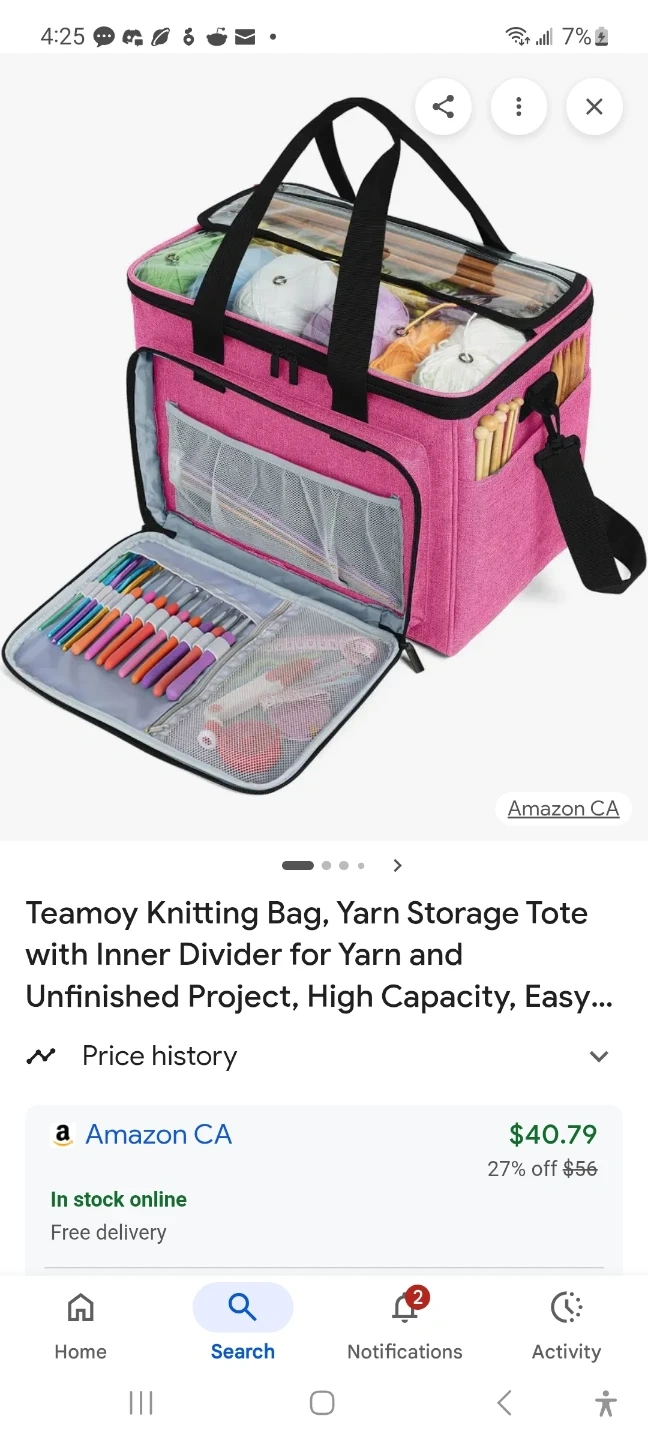 This Teamoy knitting bag is designed for organizing yarn and unfinished projects. It has multiple compartments and clear pockets for easy access to your supplies. This bag is great for crafters on the go!