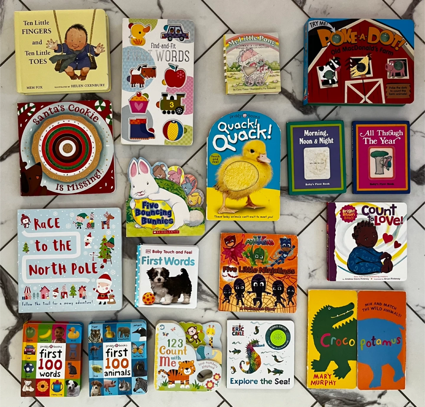 A fun collection of board books for little ones. Includes titles like 'Ten Little Fingers and Ten Little Toes', 'First Words', and 'Explore the Sea!'. These touch-and-feel books offer engaging textures and bright illustrations. Perfect for early learning and playtime!