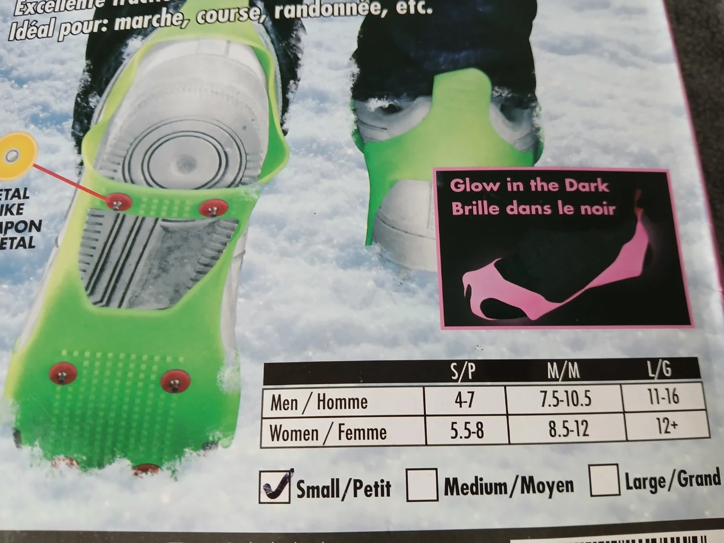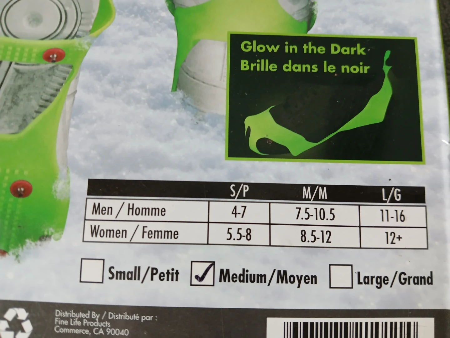 These FineLife Ice Grippers offer excellent traction on ice and snow. They're designed for walking, running, and hiking. Features metal spikes and a glow-in-the-dark element. Medium size fits Men's 7.5-10.5 and Women's 8.5-12.