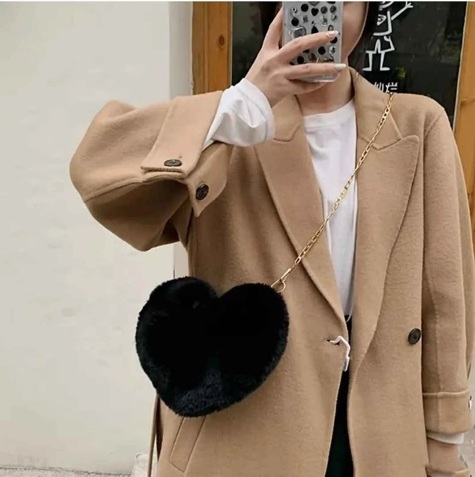 Elegant Women's Plush Handbag - Chic Faux Fur Crescent Bag with Zipper Closure, Solid Color, Perfect for all occasions. Available at Lakeshore and Thirteenthstreet.