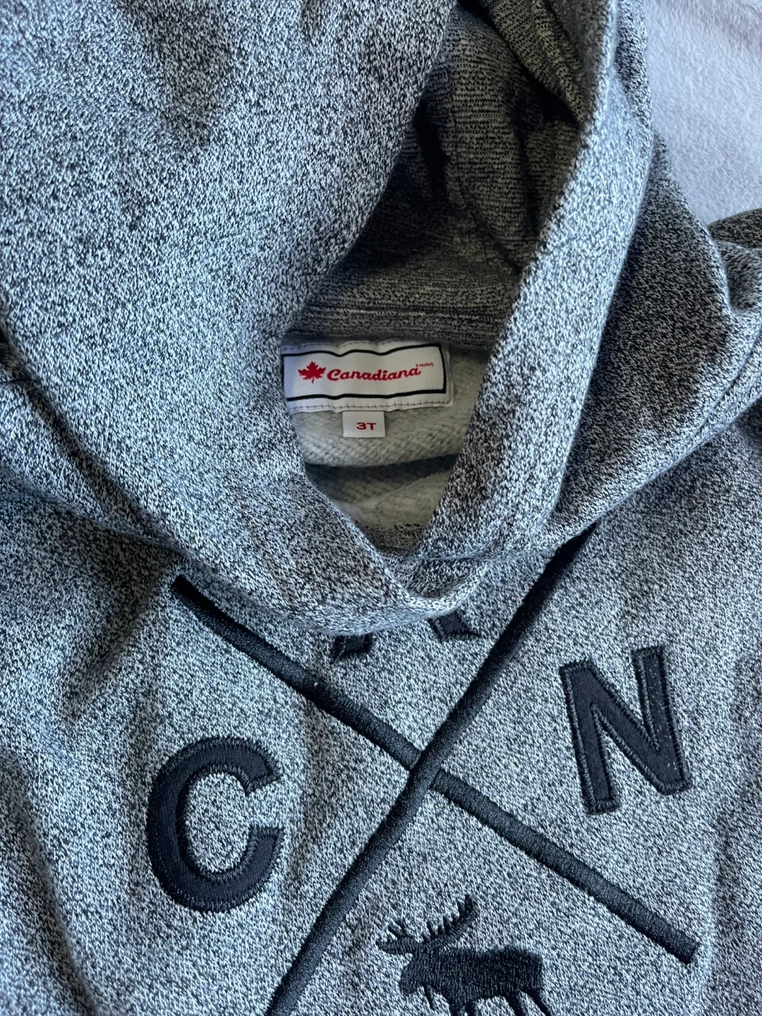 Buy & SellCanadiant C/A/N Hoodie Grey Size 3TCanadiant C/A/N Hoodie Grey Size 3T$9Grey heathered hoodie with "C/A/N" graphic and a moose emblem. It's a size 3T. This hoodie features "Can" embroidered on the sleeve cuff.ÉtatLike newWHERE TO MEETKipling Avenue & Eglinton Avenue WestView MapSELLERverifiedMarieRichview1469 reviews0 chats·0 favorites·1 viewsSEND CHAT TO SELLERHi Marie! I’m interested in your listing.Hi Marie! I’m interested in your listing.Get the Karrot app to chatSign In to chat