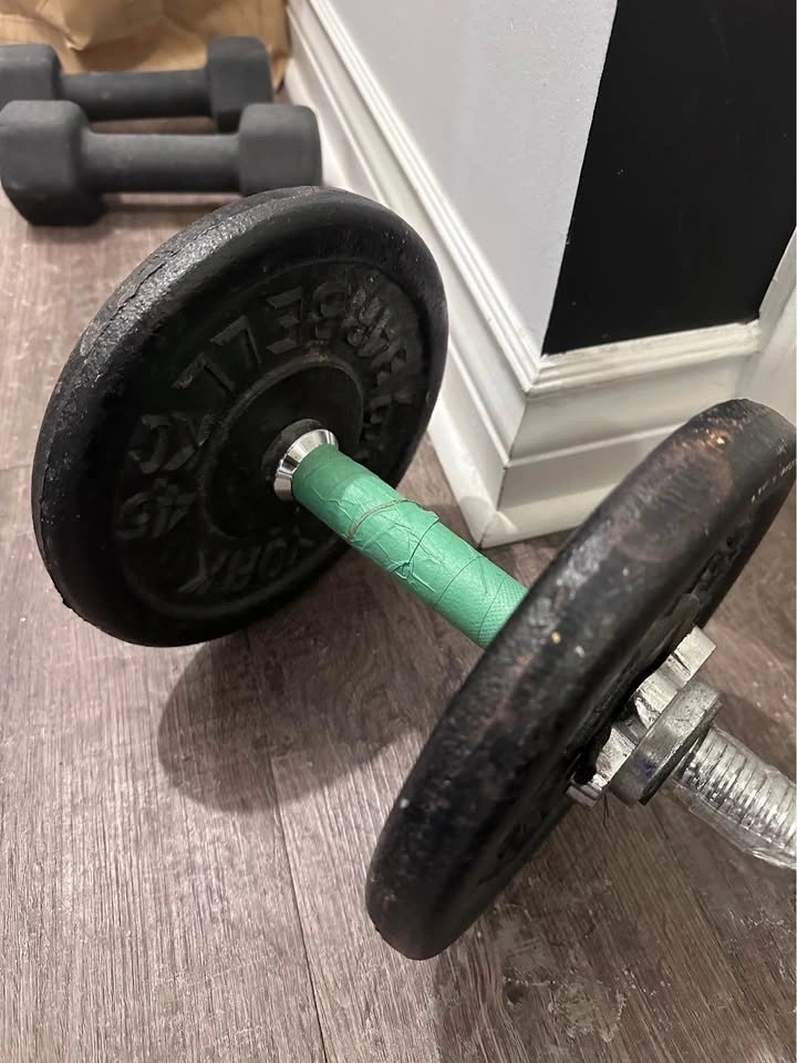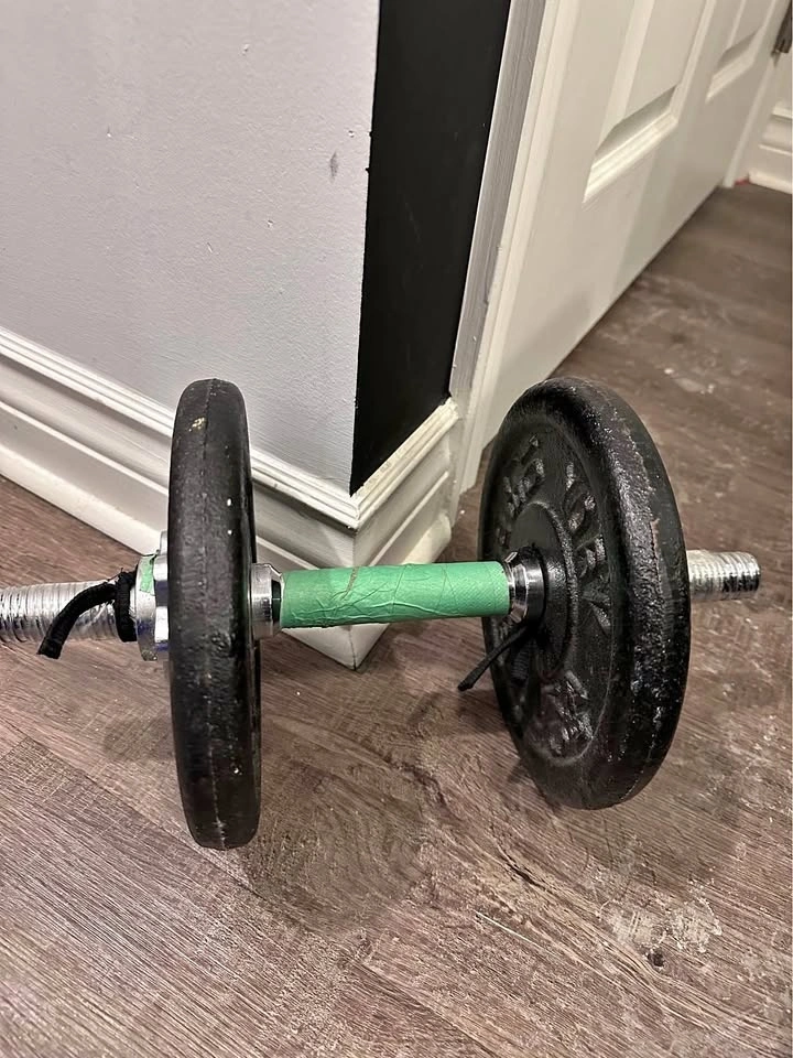 Durable YORK dumbbell. It comes with two 4.5kg weight plates, so the total weight is approximately 20 pounds. Please come pick it up at my room (Danforth Ave. and Woodbine Ave) and pay by cash. If you see any other items I'm listing that catch your interest, please let me know. If you'd like to purchase them together, I'll be happy to offer a discount.