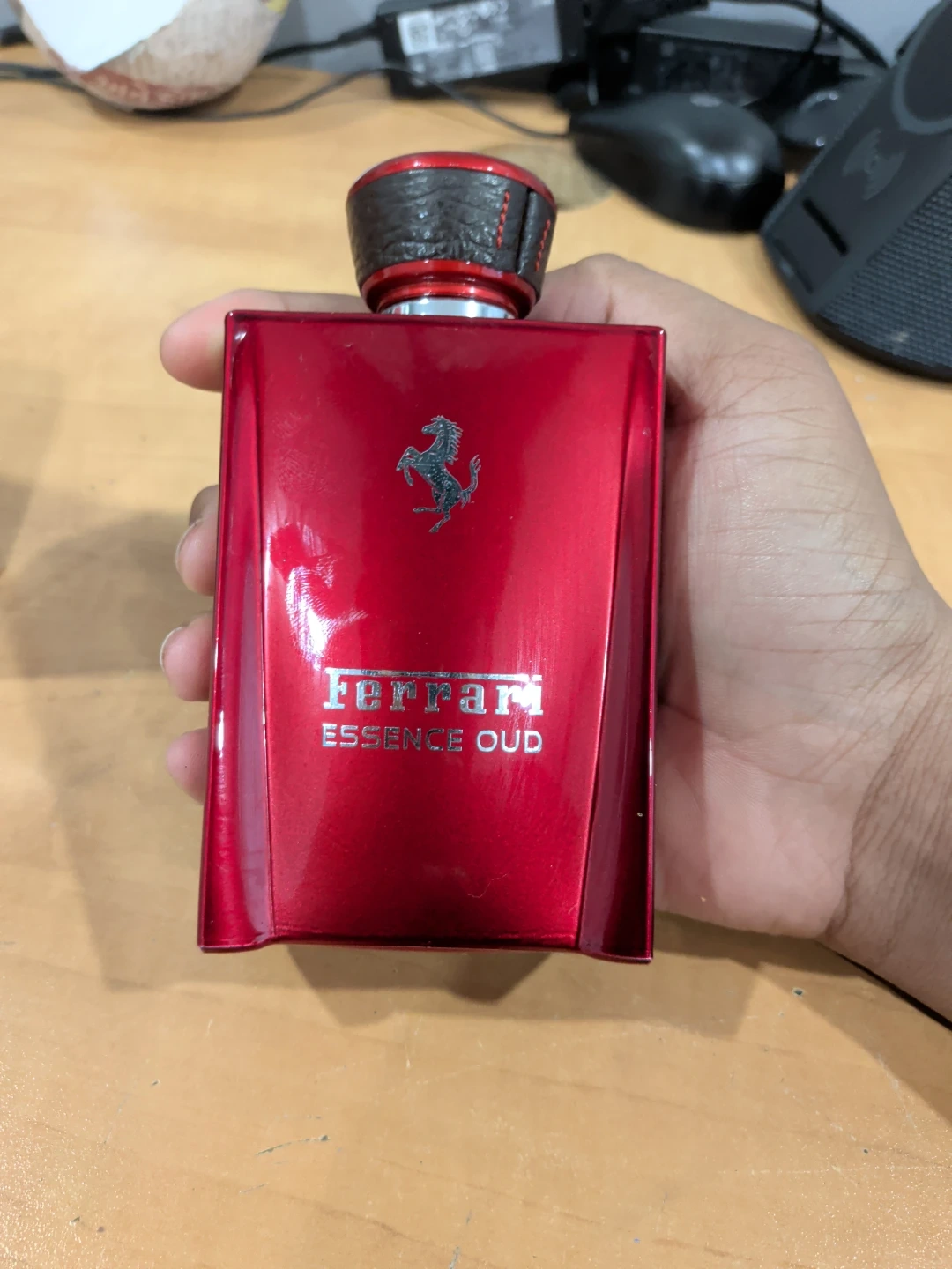 Ferrari Essence Oud Eau de Parfum for men is a rich and sophisticated fragrance. It's a 100ml bottle of Eau de Parfum, featuring a blend of oud and other aromatic notes. It comes in its original box.