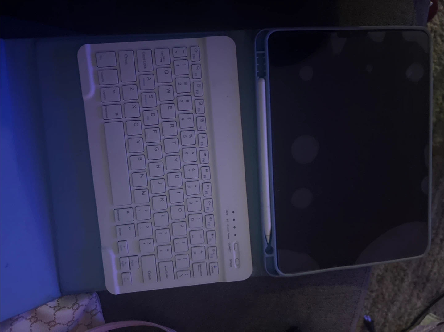 This is an Apple iPad. It's a tablet device. It has a camera on the back. It’s comes with apple pen, case w keyboard and charger as well!