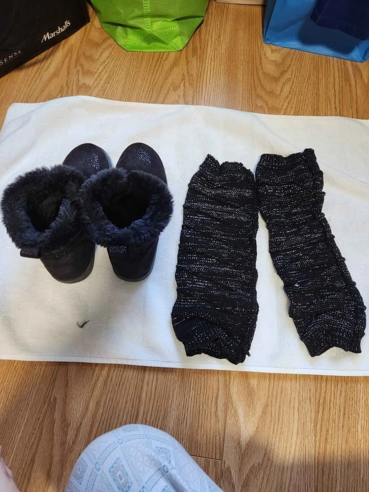 Women’s Black Ankle Boots w/ Faux Fur + Knit Leg Warmers (Est. S
