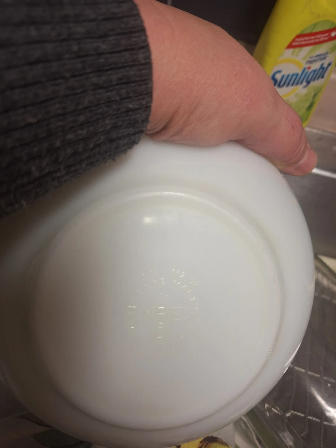 Vintage white Pyrex mixing bowl. Marked #403, 2 1/2 qt.