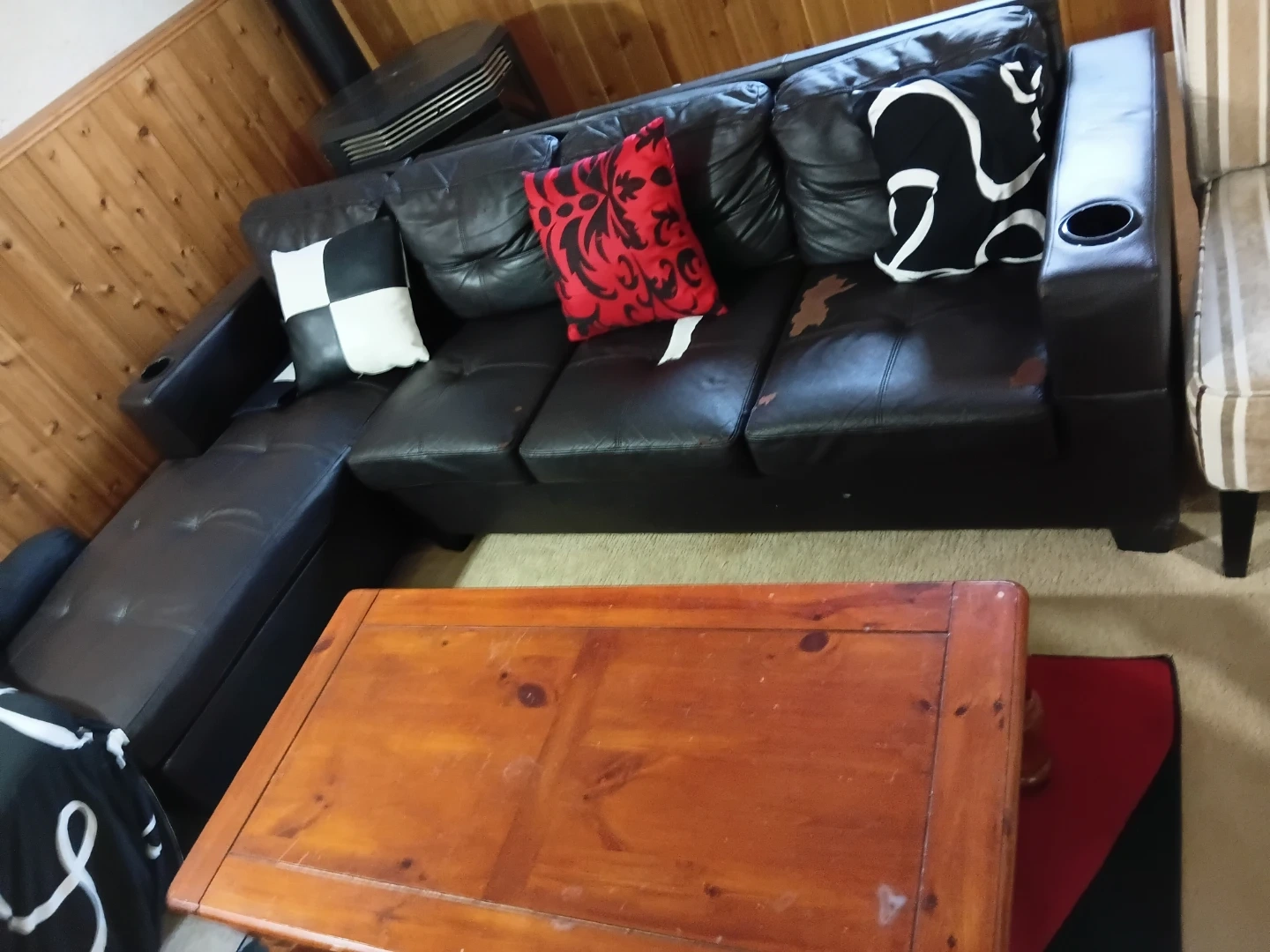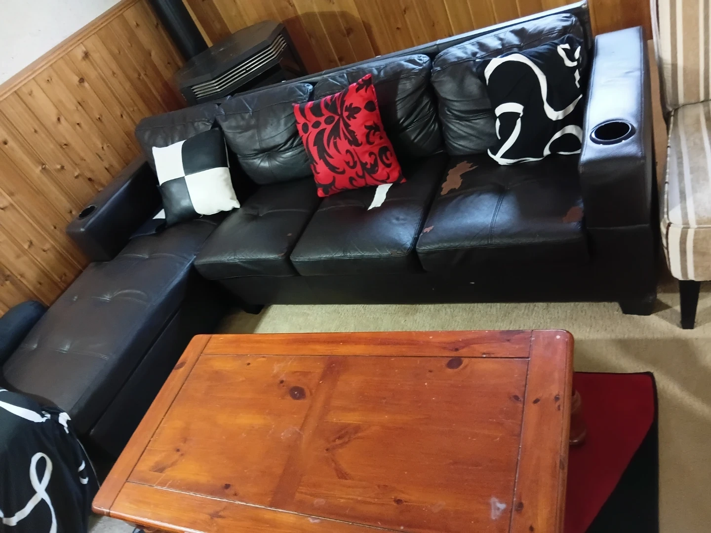 Buy & SellBlack Leather Sectional CouchBlack Leather Sectional Couch$150Black leather sectional couch. It's a comfortable and spacious seating option. Some wear is visible on the leather.WHERE TO MEETMacEwan UniversityView MapSELLERoilershopNortheast Edmonton231 review0 chats·0 favorites·20 viewsSEND CHAT TO SELLERHi oilershop! I’m interested in your listing.Hi oilershop! I’m interested in your listing.Get the Karrot app to chatSign In to chat