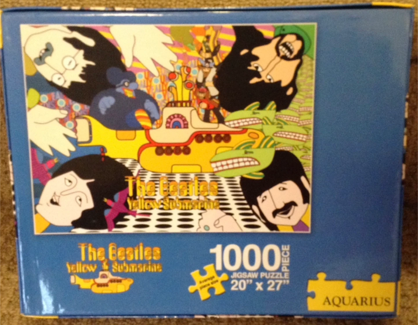 This Aquarius jigsaw puzzle features The Beatles' iconic Yellow Submarine. It measures 20" x 27" with an average piece size. Made one time, all pieces accounted for. A fun challenge for any Beatles fan!