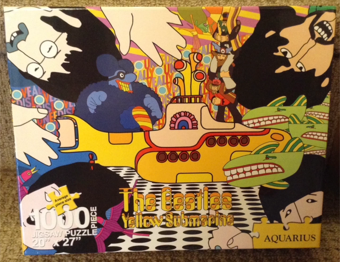 This Aquarius jigsaw puzzle features The Beatles' iconic Yellow Submarine. It measures 20" x 27" with an average piece size. Made one time, all pieces accounted for. A fun challenge for any Beatles fan!