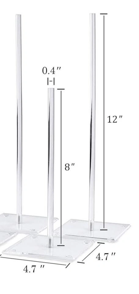 Brand new 4 pieces clear acrylic donut stands. Doughnut display holder, great for weddings, parties, birthdays, baby showers, and bridal decorations. Length 12 inches, square base 4.7 inches.