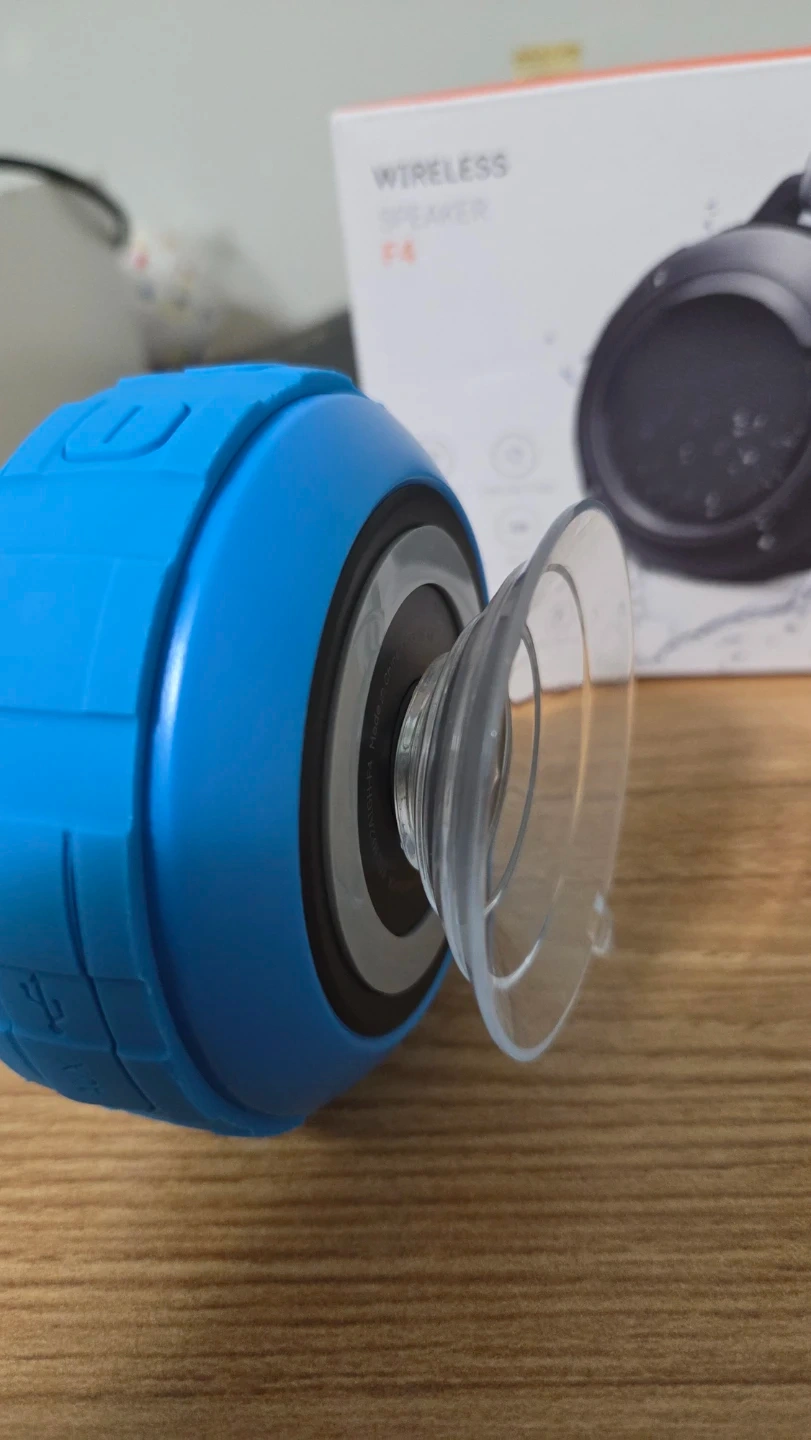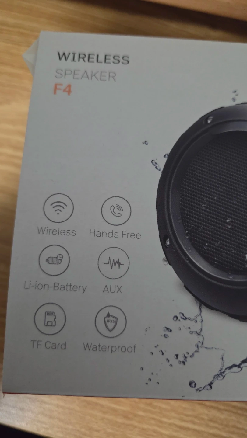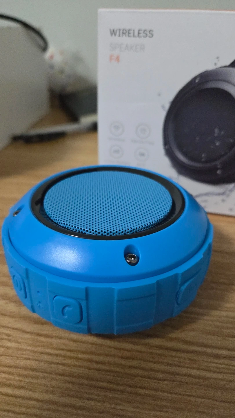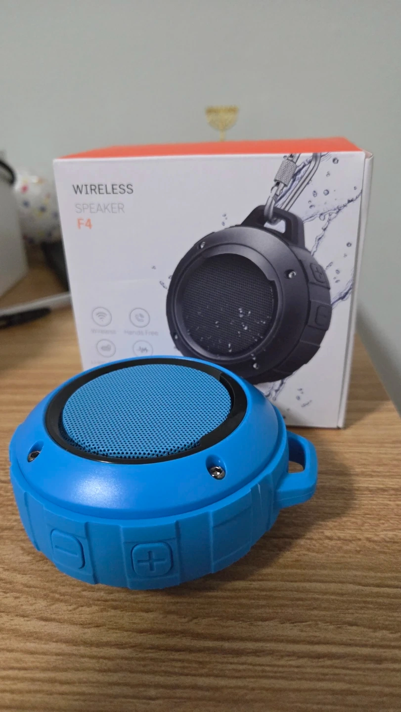 This is a brand new blue wireless speaker, model F4. It features a Li-ion battery and supports TF card and AUX input. It's also waterproof with an IPX5 rating. Wireless range is 33feet, and can last 6-8hrs playing time. I have it as extra but won't need it anymore. Please don't ask for a lower price.