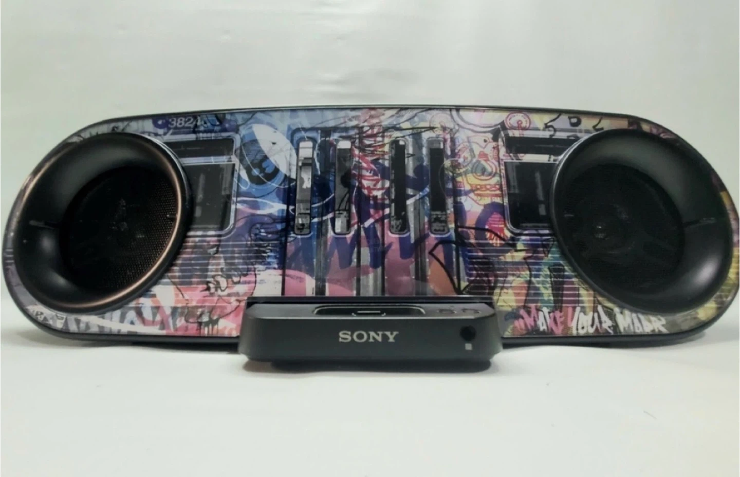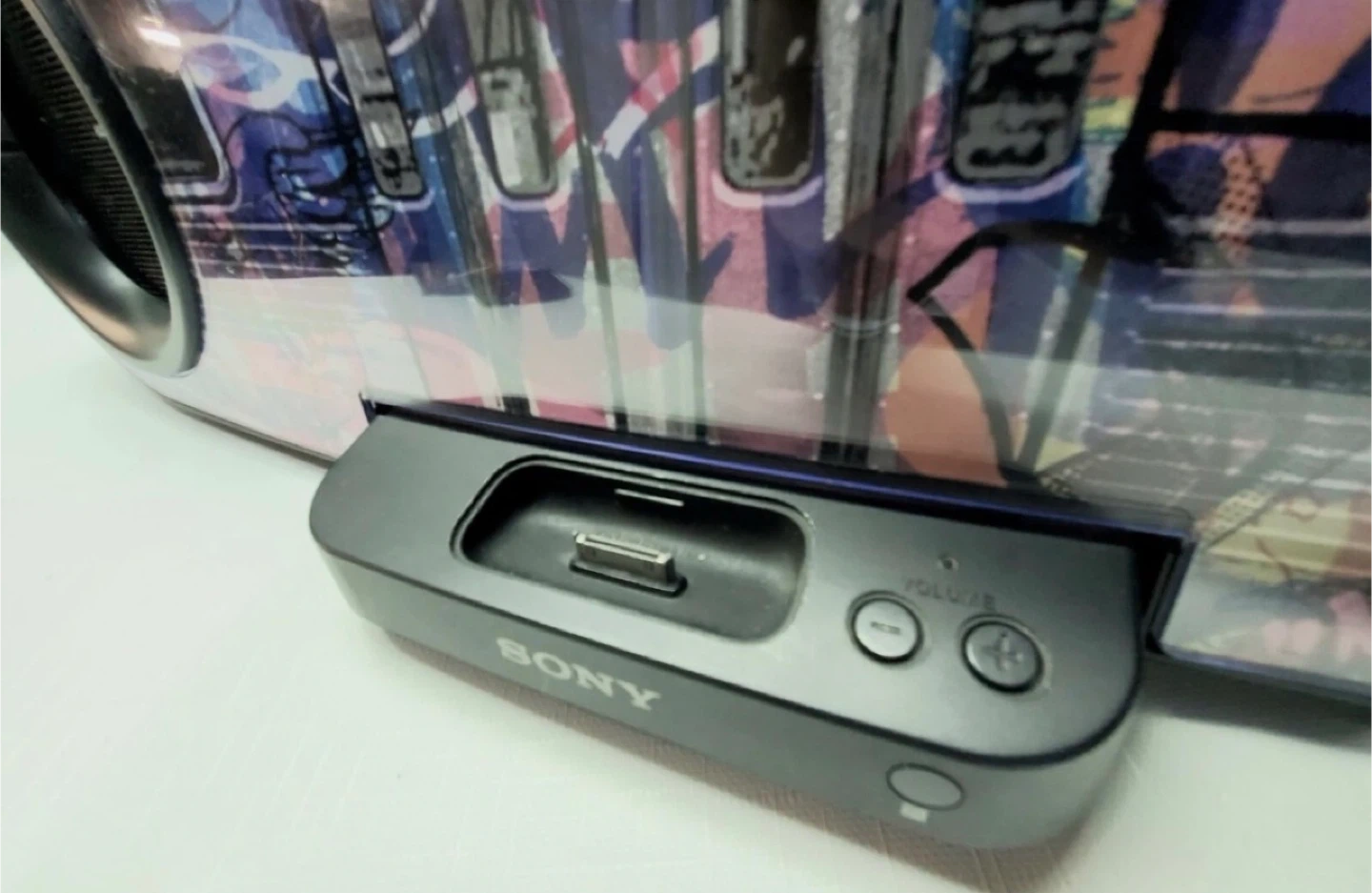 Description IPod dock with fun customizable front graphics Play your iTunes library with amazing sound quality Choose from the supplied graphics or design your own Easily connect and charge iPod Dock and Charge: Wake up to your favorite content stored on an iPod - you can connect and charge while you sleep. Certification: With Made for iPod and Works with iPhone certified, the SK8iP dock works with both players. Stereo Sound Quality: Superior sound quality for your entire iTunes music collection with 75W RMS output power. Audio input: Plug in your digital music player and play mp3s at full volume with fantastic sound quality (cable supplied). Exclusive design: Choose from fun graphic front panels or design your own on the Web.