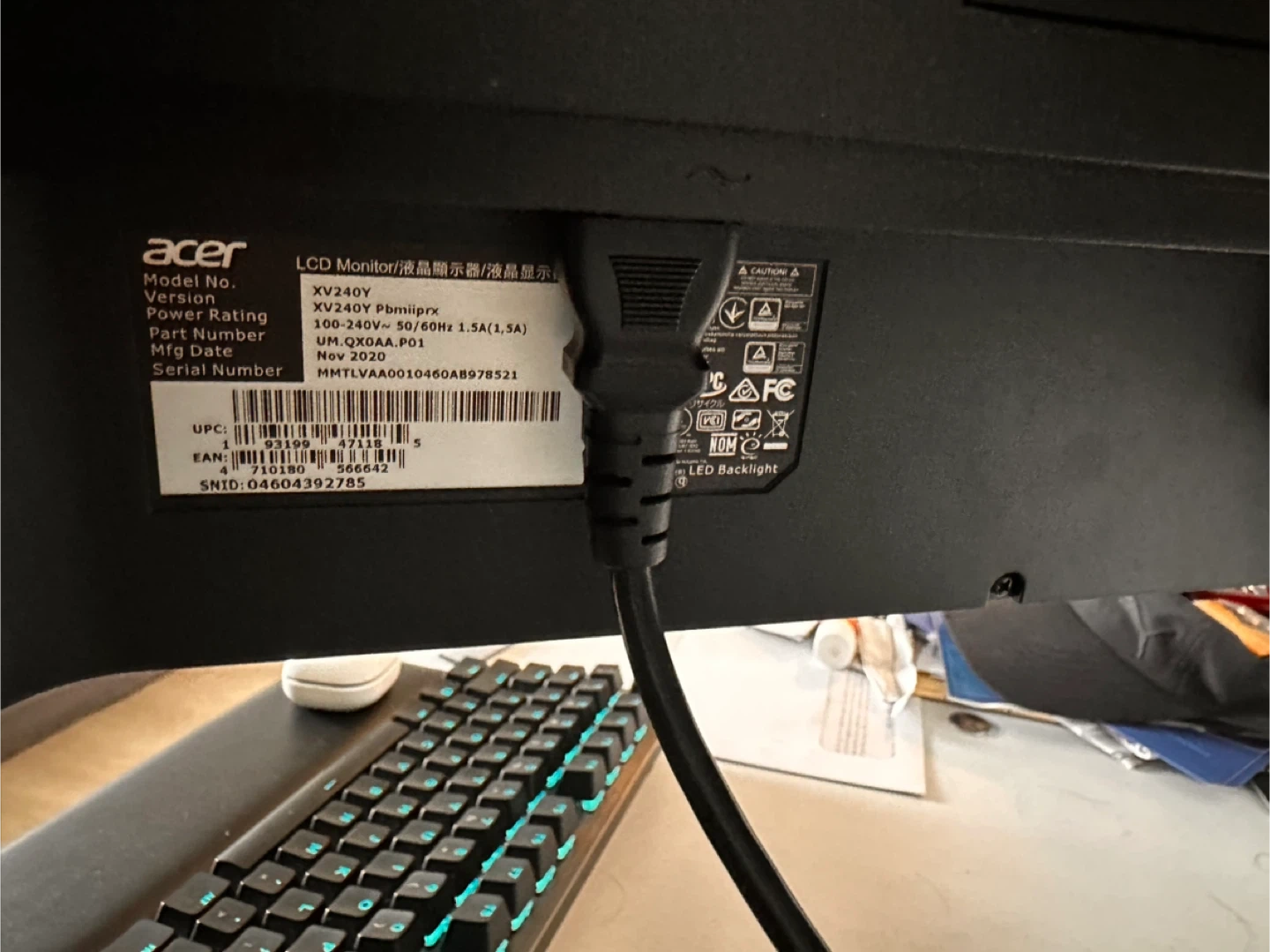 This is an Acer XV240Y gaming monitor. It's part of the Nitro XV0 series. Features a 165Hz refresh rate with 0.5ms response time. Perfect for fast-paced gaming action!