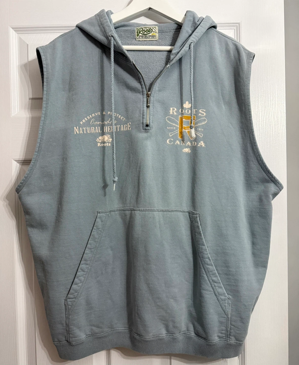 Buy & SellRoots Canada Sleeveless HoodieRoots Canada Sleeveless Hoodie$15This is a Roots Canada sleeveless hoodie. It's a quarter-zip style with a front pouch pocket. Made from a soft cotton blend for comfort.ConditionGoodSizeXLBrandRootsWHERE TO MEET118 Markville RoadView MapSELLERverifiedMamaKassaUnionville50650 reviews0 chats·0 favorites·3 viewsSEND CHAT TO SELLERHi MamaKassa! I’m interested in your listing.Hi MamaKassa! I’m interested in your listing.Get the Karrot app to chatSign In to chat