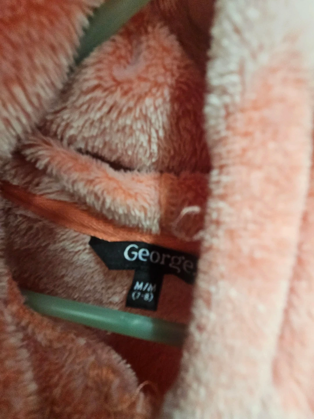 This fuzzy hoodie from George is super soft and features a cute all-over heart pattern. It's a size M/M, which typically fits ages 7-8. Great for staying cozy!
