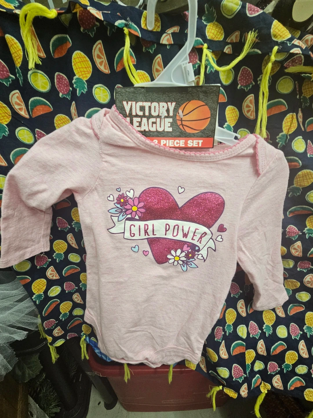 Two piece baby outfit set. Includes a sparkly red dress by Cat & Jack, size 18 months. Also includes a pink "Girl Power" bodysuit by George, size 6-12 months. Great for dressing up or everyday wear!