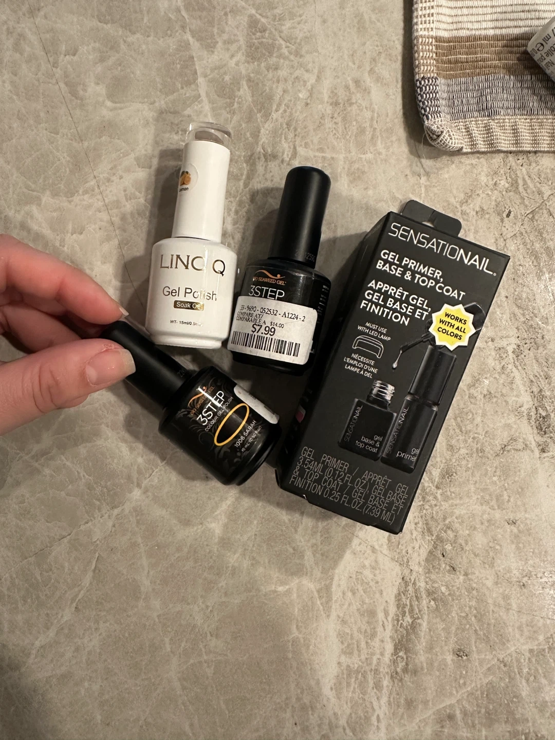 It comes with a Sensationail Gel Primer, Base, and Top Coat set. The dryer lamp has a digital display and includes its power adapter. This kit is perfect for at-home gel manicures!