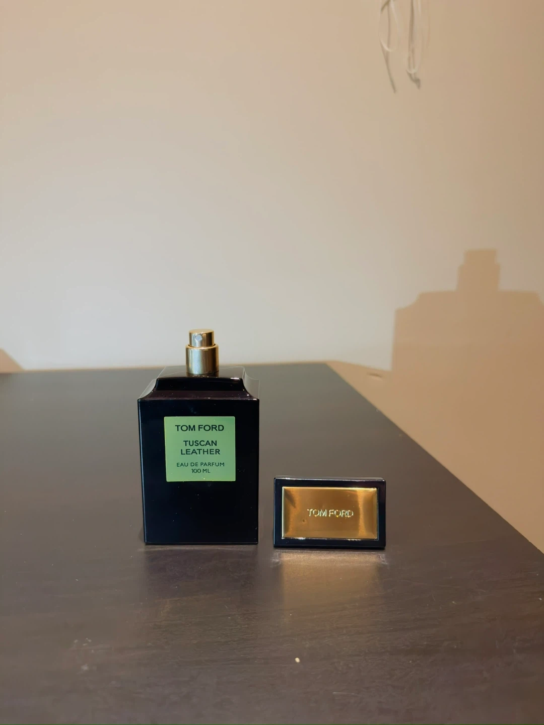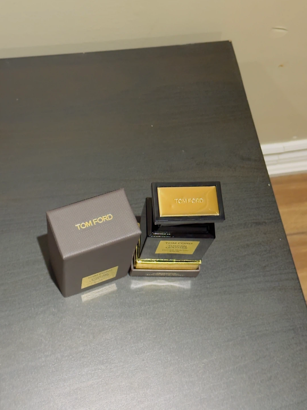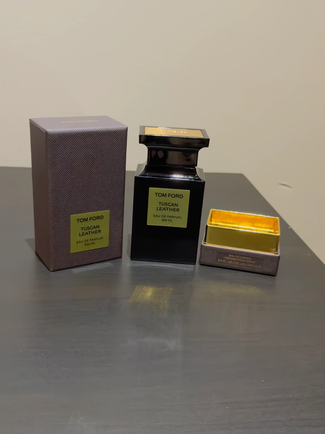 This is a Tom Ford Tuscan Leather Eau de Parfum. It comes in a 100 mL bottle. The original box is included.