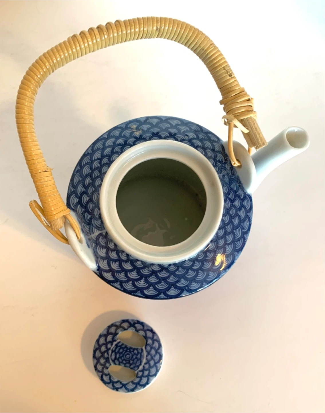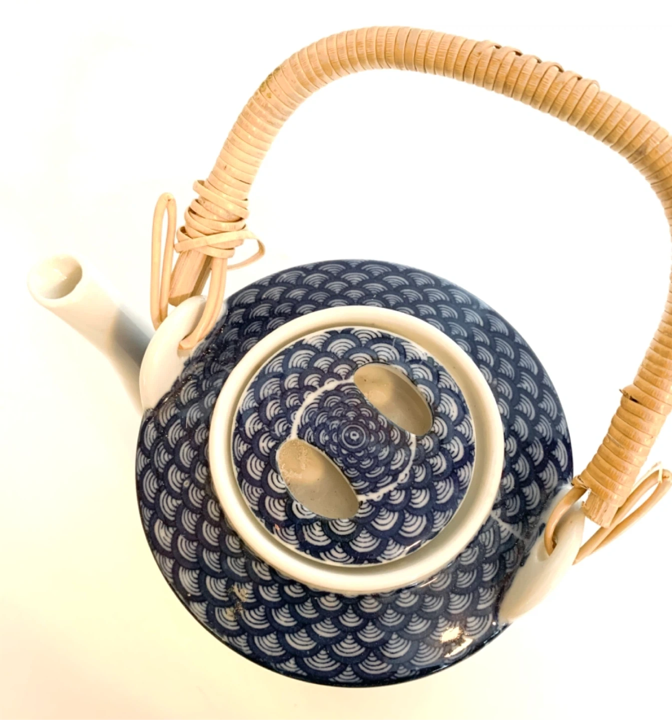 Teapot with lid Japanese blue and white design