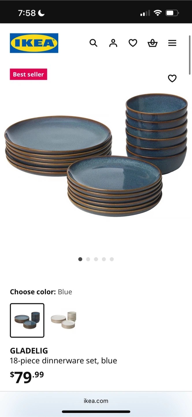 Buy & SellIKEA GLADELIG 18-Piece Dinnerware Set - BlueIKEA GLADELIG 18-Piece Dinnerware Set - Blue$45IKEA GLADELIG 18-piece dinnerware set (blue). Plates + bowls, full set, excellent condition. Pickup this week. Cash or Venmo.ConditionLike newWHERE TO MEET10031View MapSELLERverifiedJosefinSugar Hill1236 reviews2 chats·1 favorites·76 viewsSEND CHAT TO SELLERHi Josefin! I’m interested in your listing.Hi Josefin! I’m interested in your listing.Get the Karrot app to chatSign In to chat