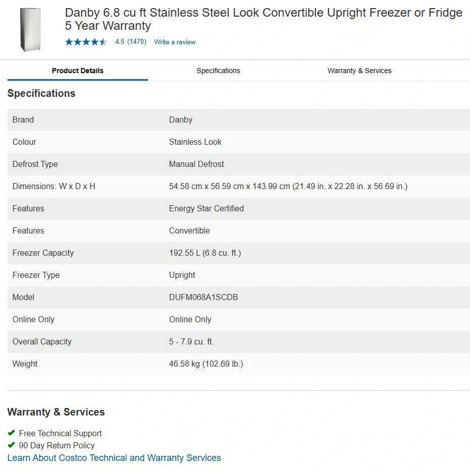Selling my Danby 6.8 cu.ft. Convertible Upright Freezer. Purchased from Costco in June 2024.