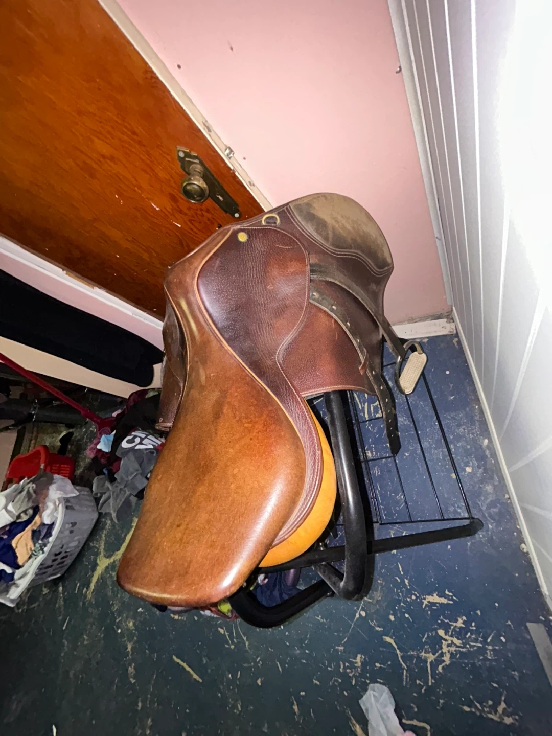 In Very good shape! Can negotiate price. Stand included. Collegiate English saddle. Only cash. Have to come pick up. NO DELIVERY!